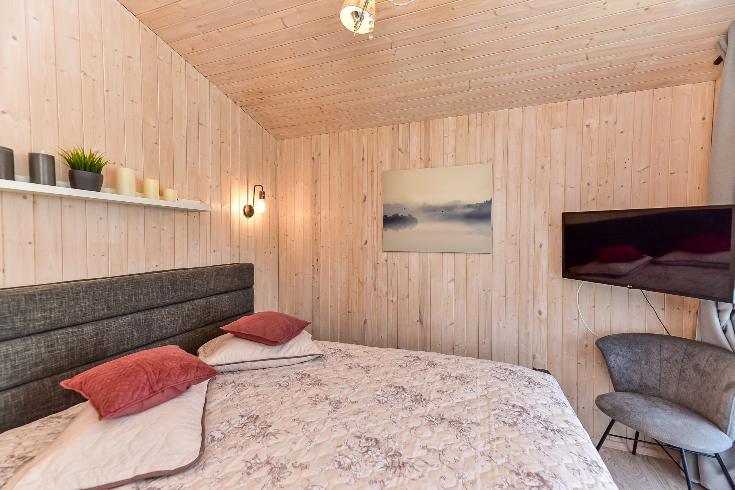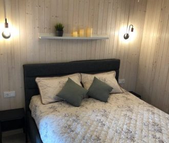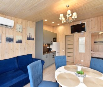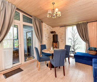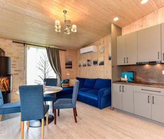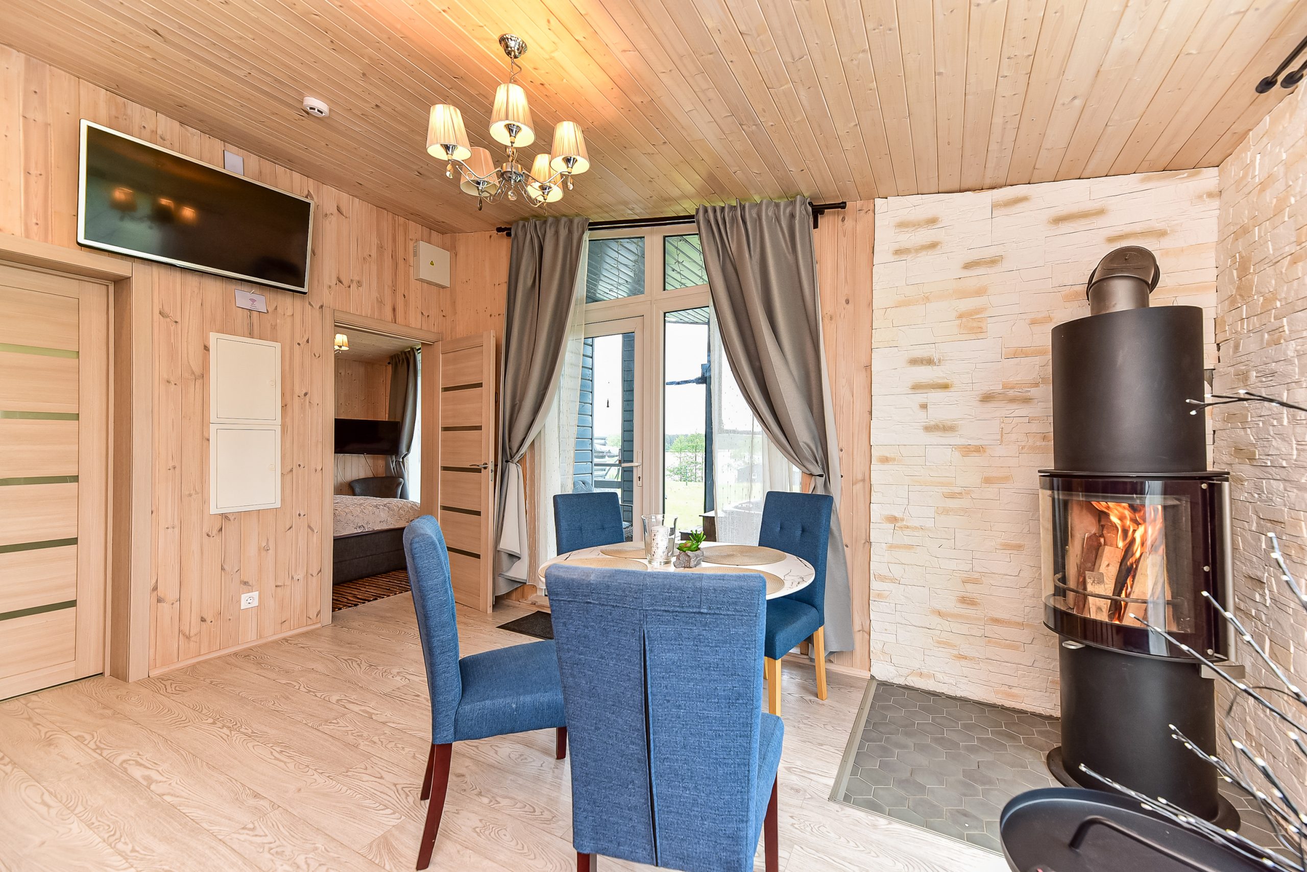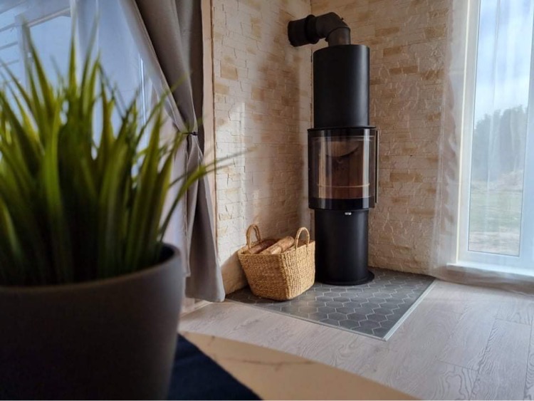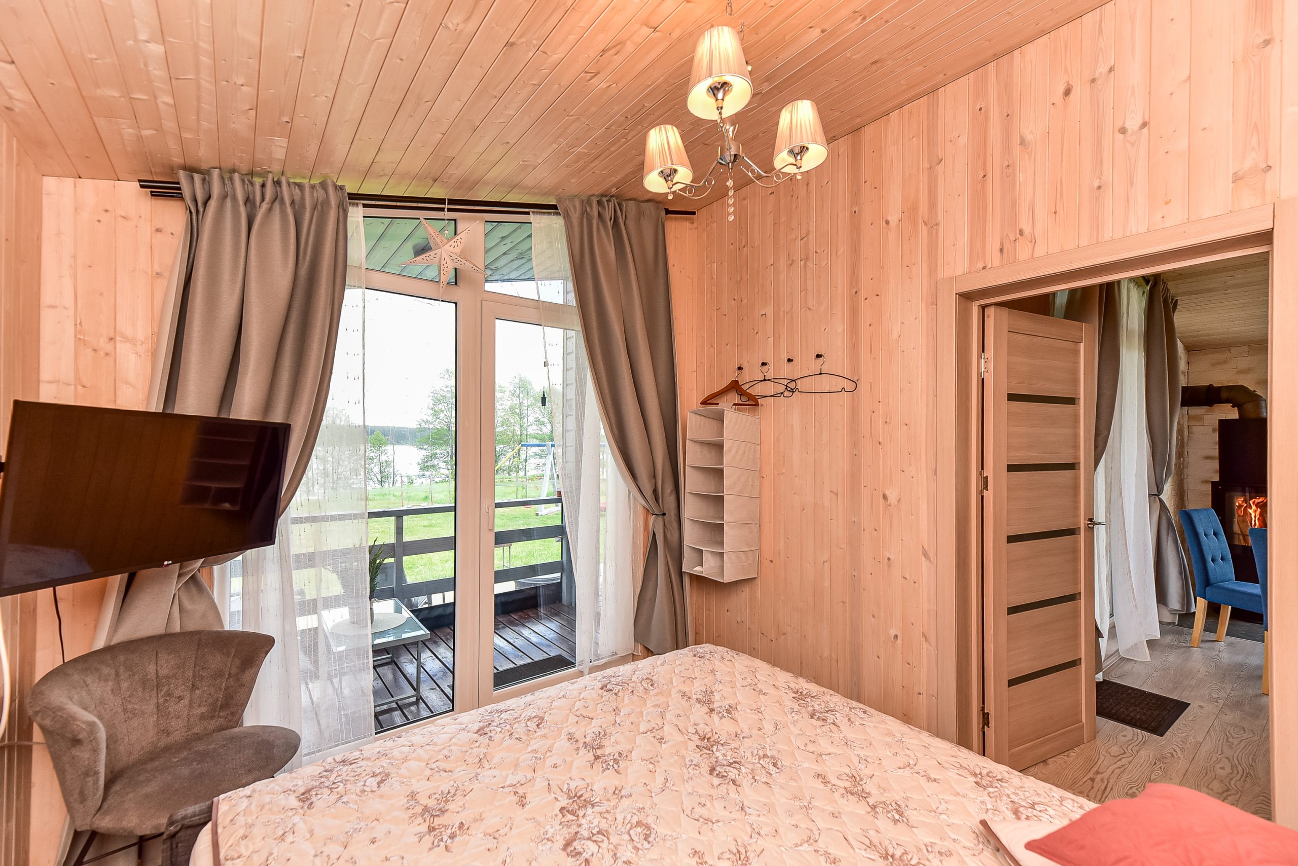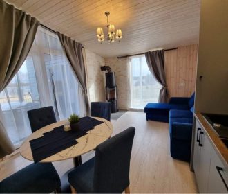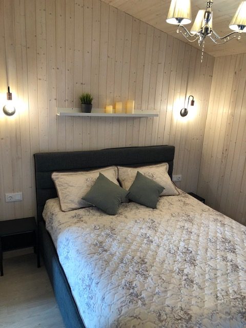 - Jaukus interjeras: Svetainė su židiniu, LED išmanusiu televizoriumi, patogiu išskleidžiamu kampu. Atskiras miegamasis su dvigule lova ir televizoriumi.
