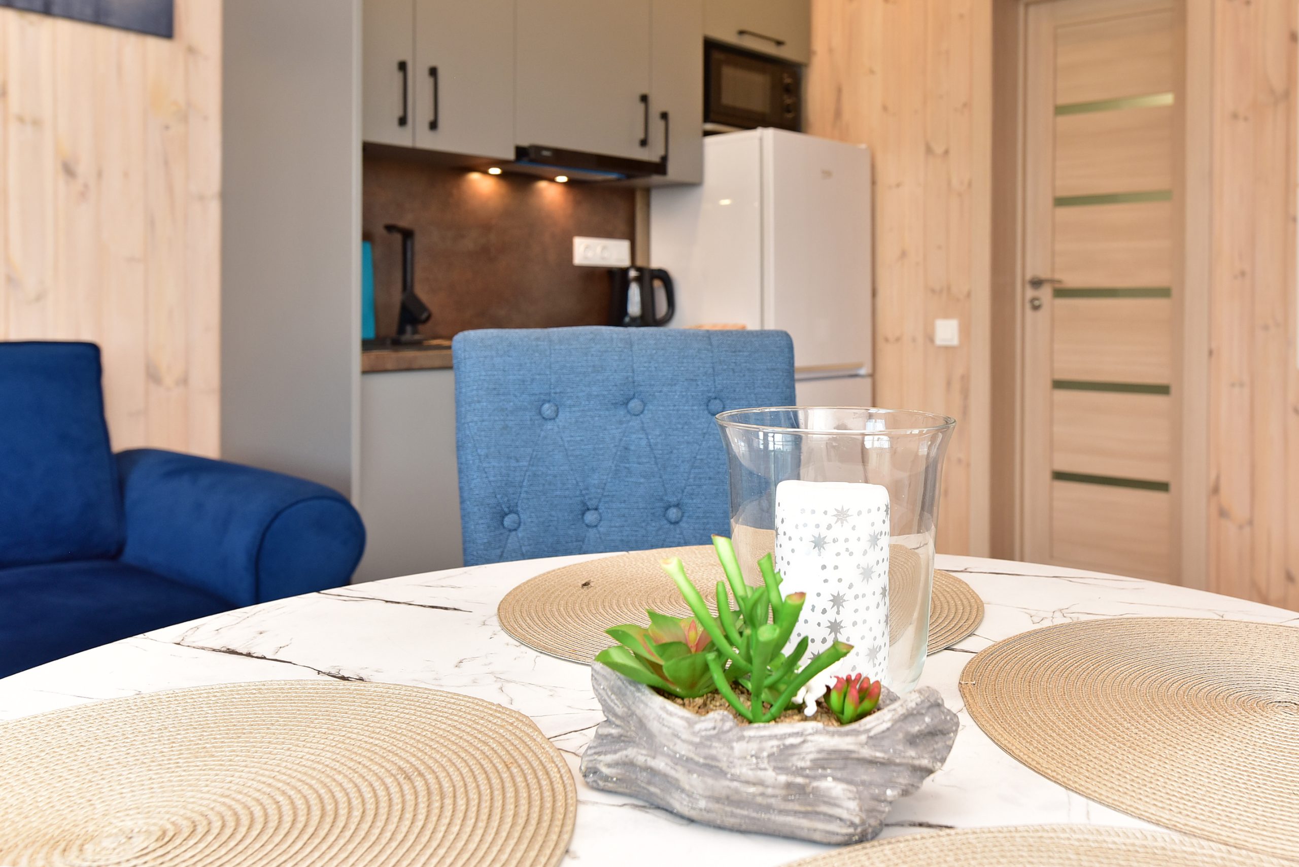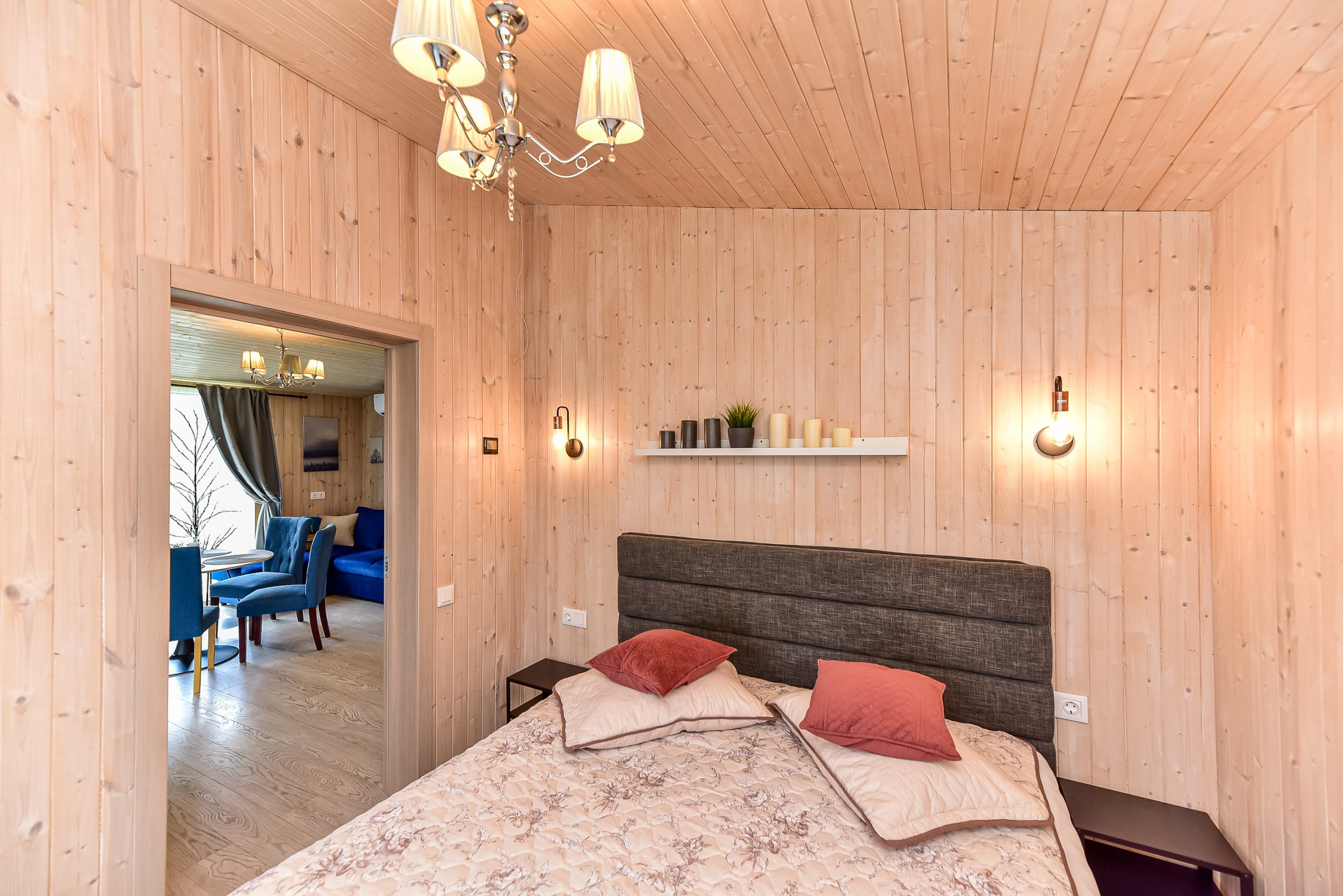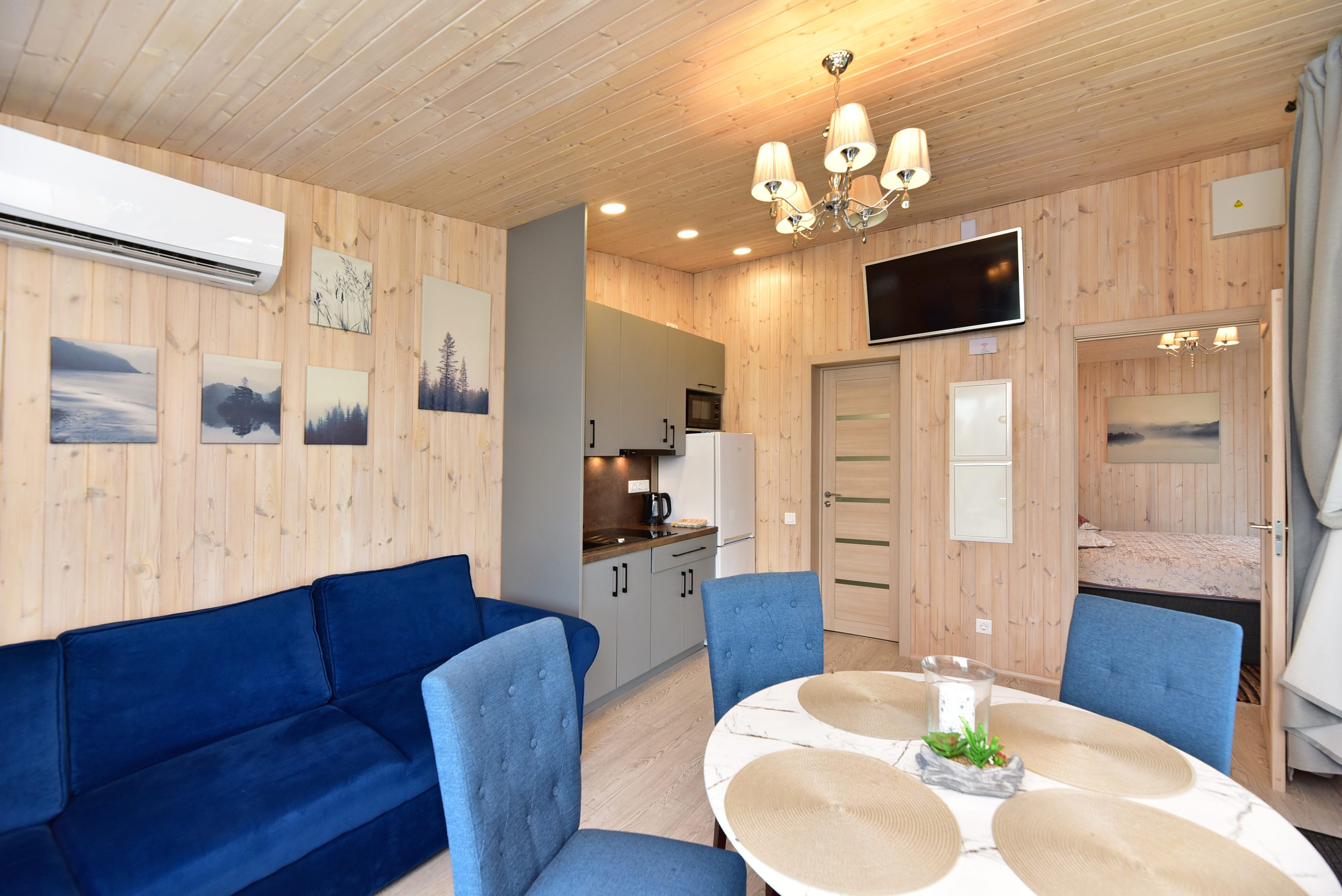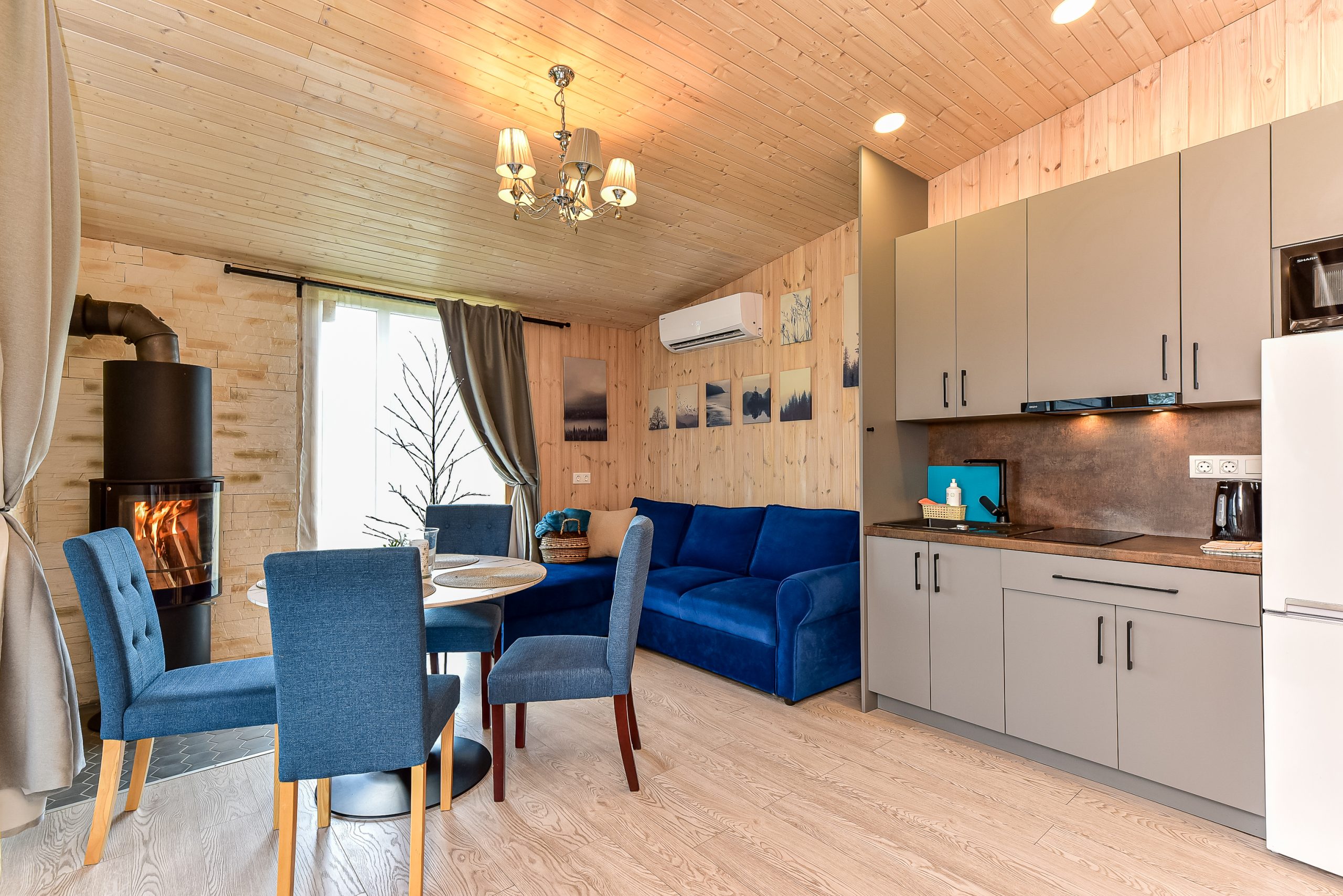 - Jaukus interjeras: Svetainė su židiniu, LED išmanusiu televizoriumi, patogiu išskleidžiamu kampu. Atskiras miegamasis su dvigule lova ir televizoriumi.