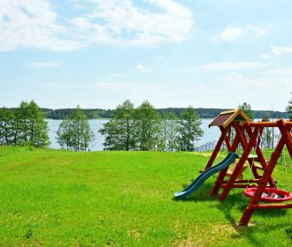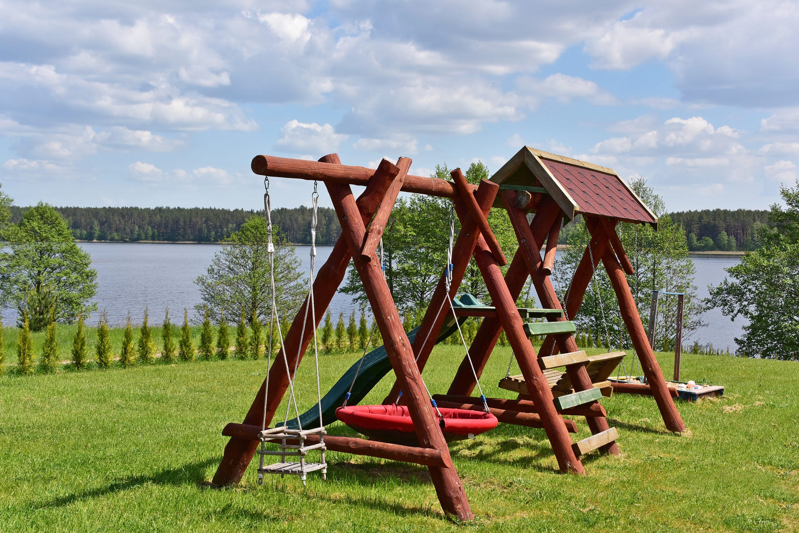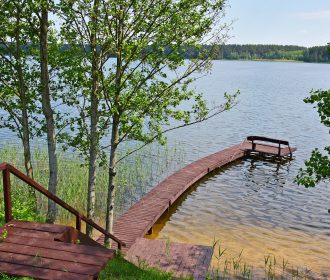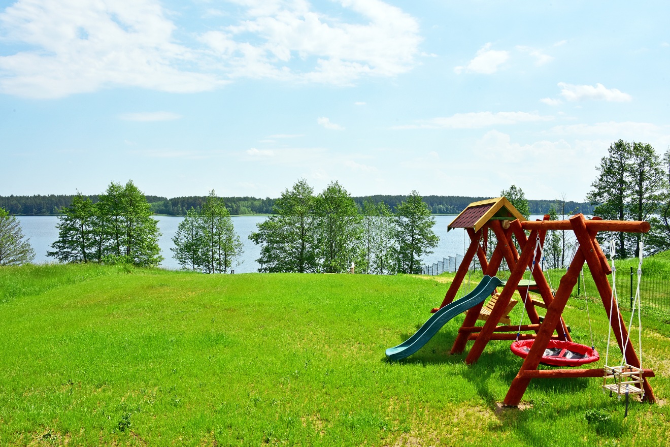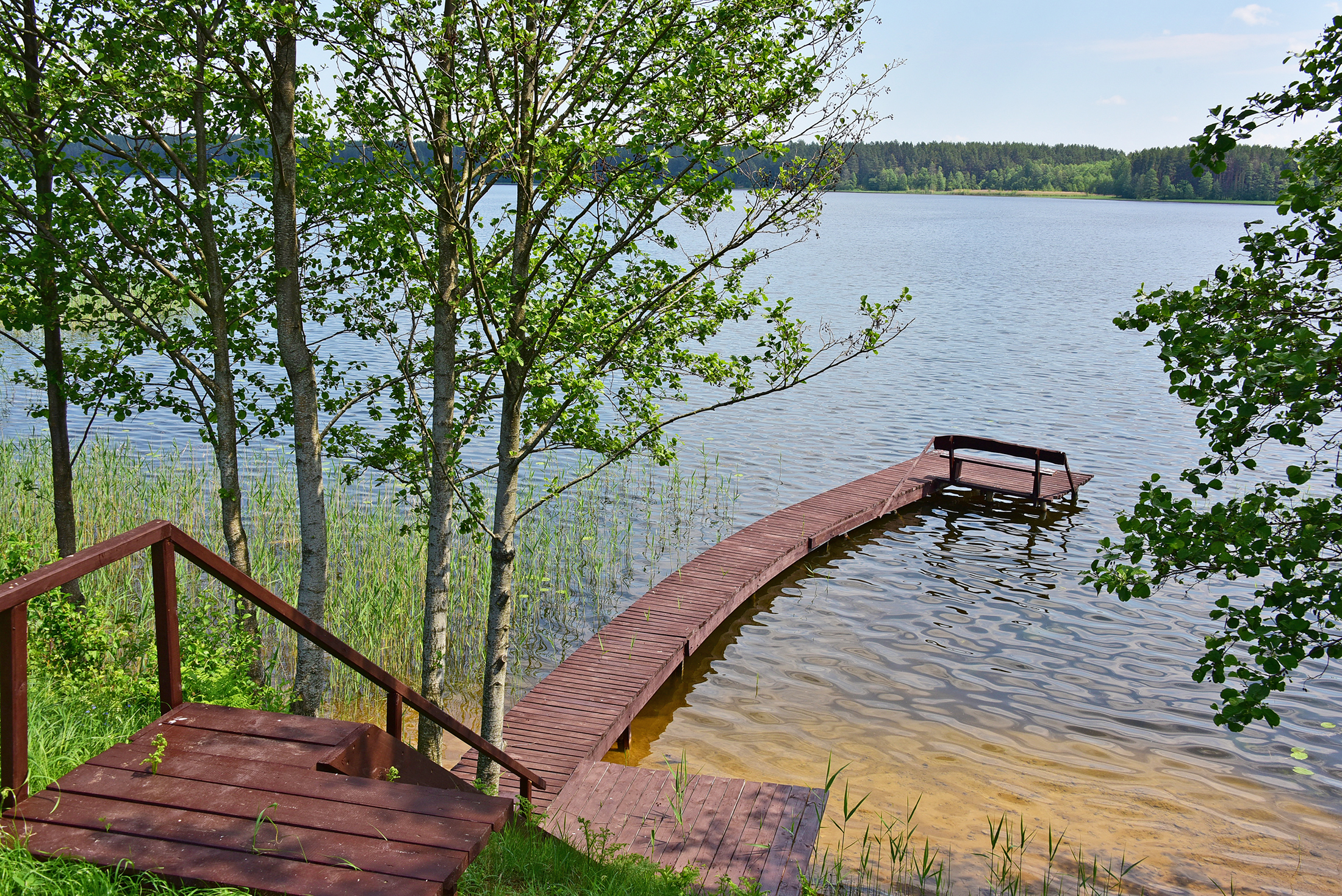 Pastatytas ant Arino ežero kranto, su atskira privačia pakrante.