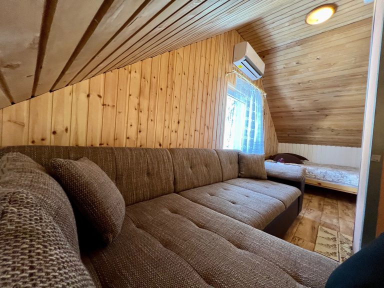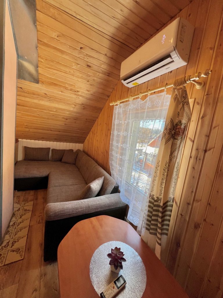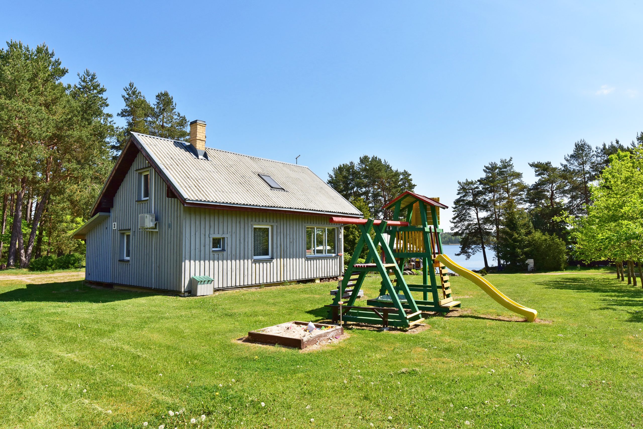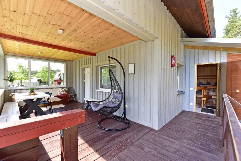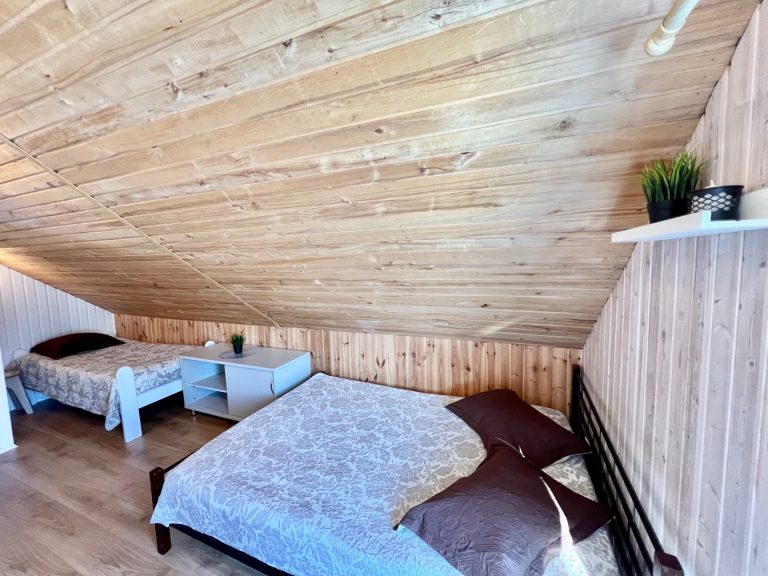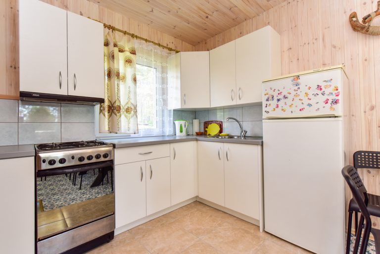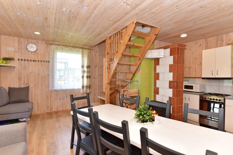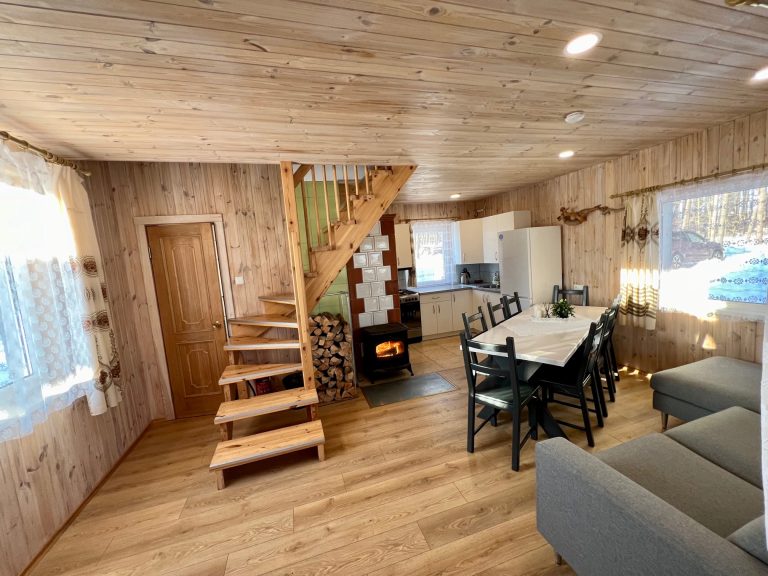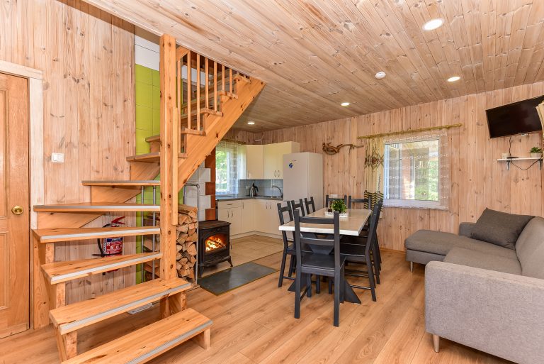 Pirmame aukšte įrengta svetainė su virtuve, tualetas, dušas. Antrame aukšte trys kambariai (vienas pereinamas), viso 10 miegamų vietų. Yra kondicionierius, internetas (WIFI). Įrengta terasa. Šalia namelio pavėsinė su kubilu, vaikų žaidimų aikštelė. Duodama šašlykinė, iešmai, malkos.