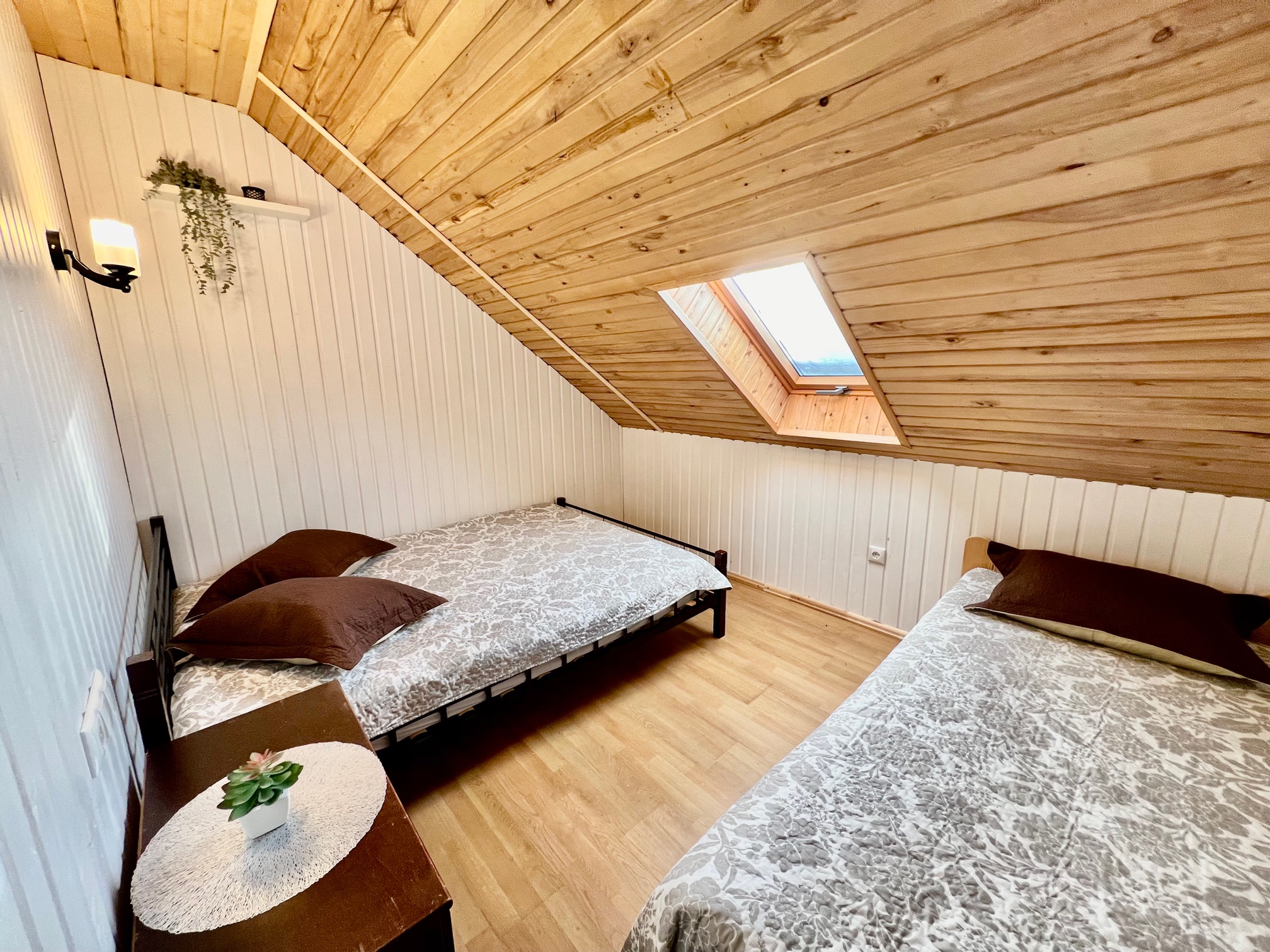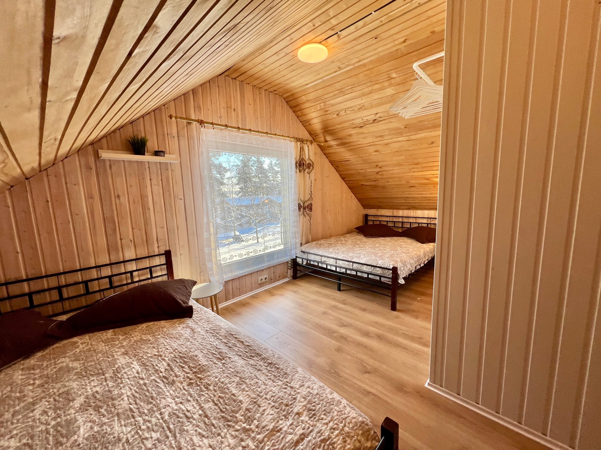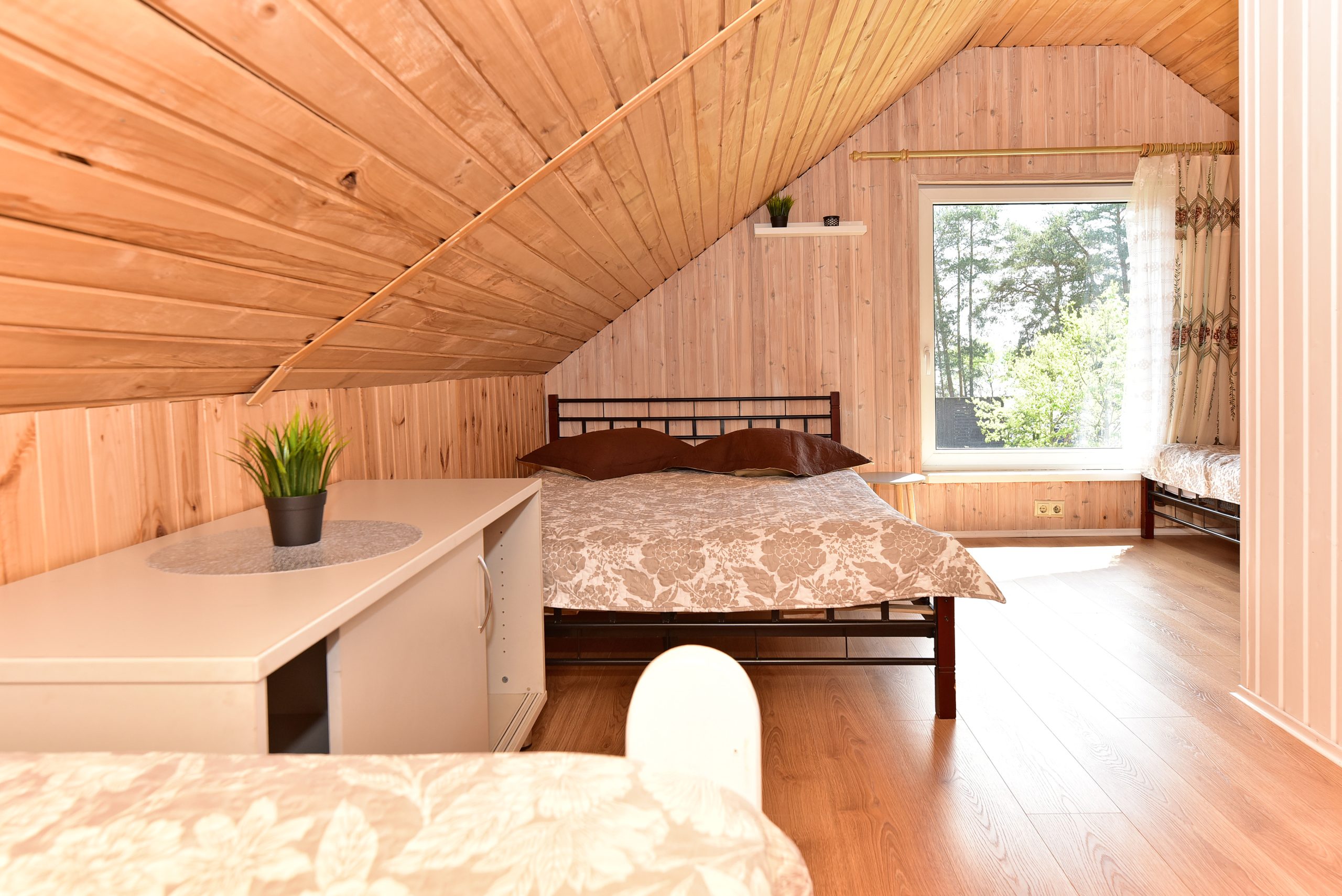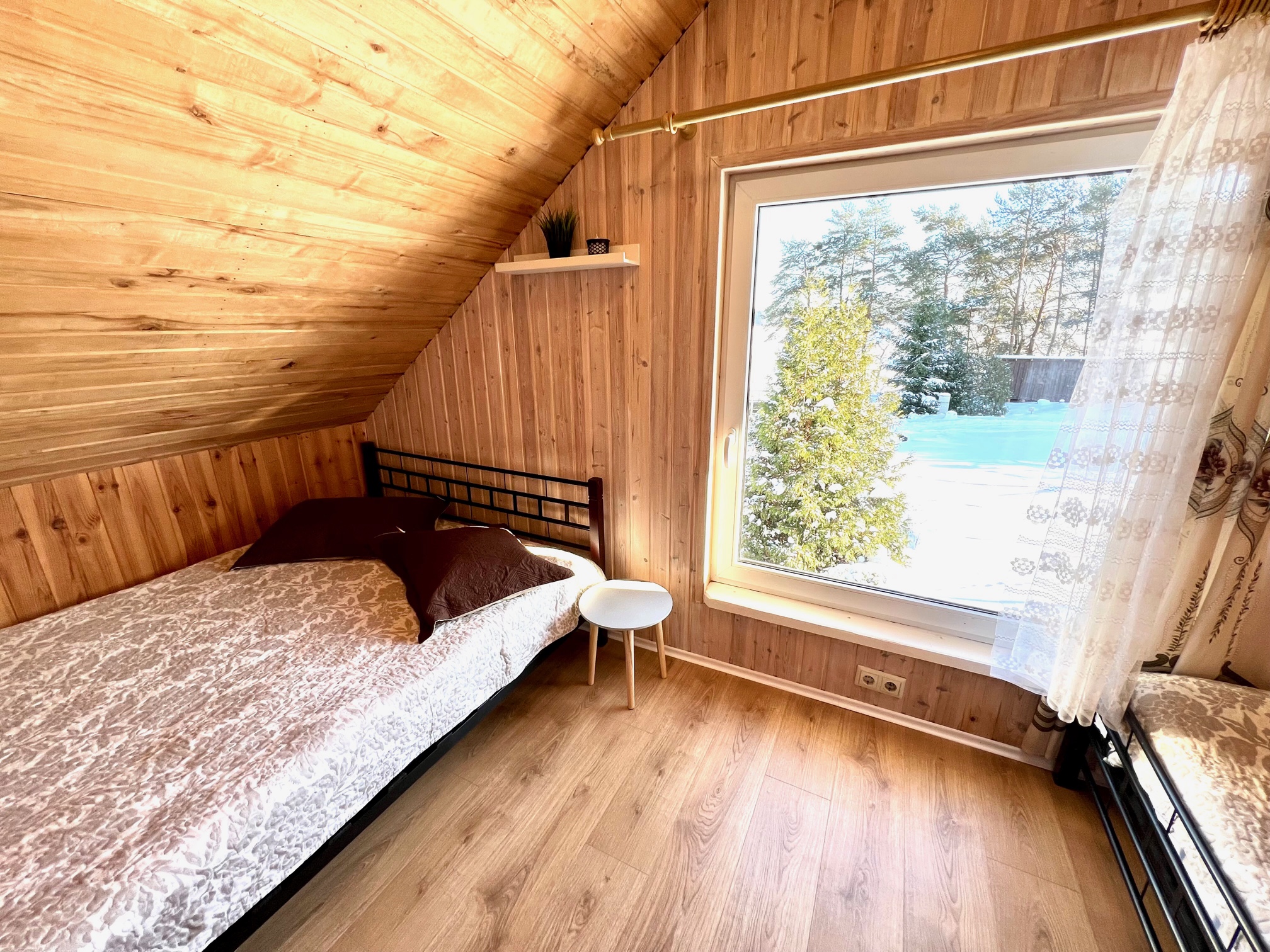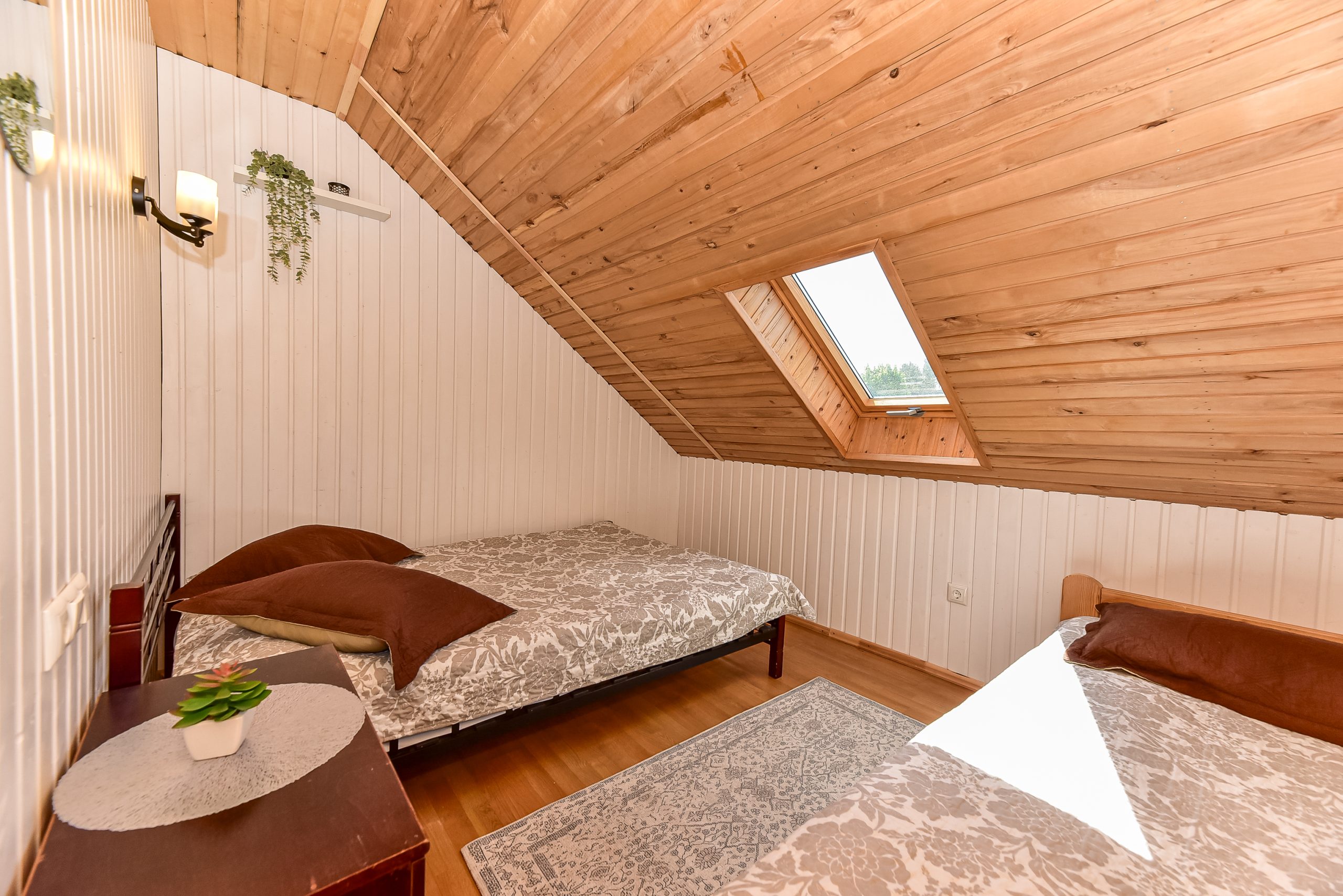 Namelyje yra pagalvės ir antklodės, užvalkalus reikia atsivežti savo. Patalynę galima išsinuomoti (viengulis komplektas – 3EUR, dvigulis komplektas – 5EUR.)