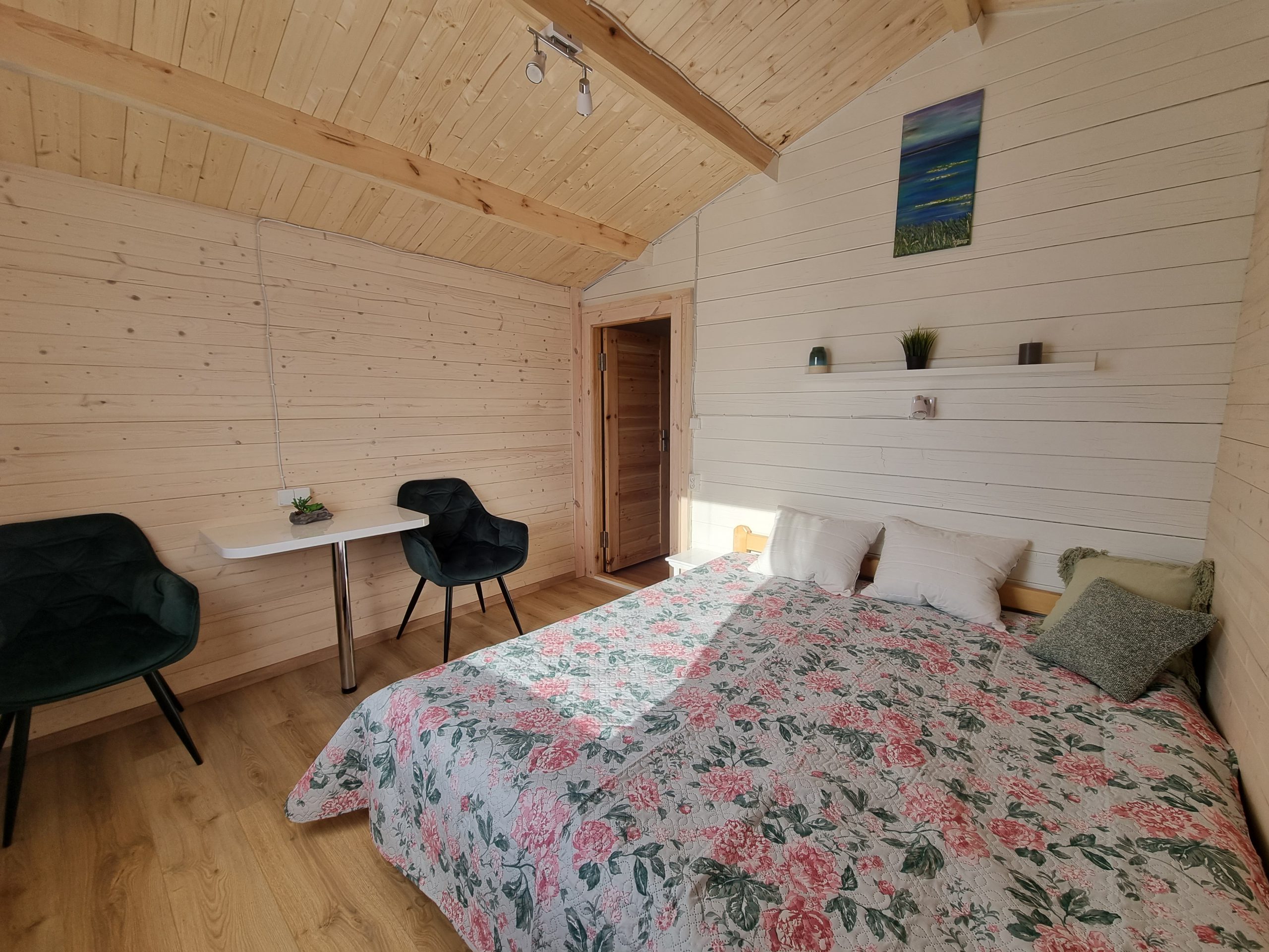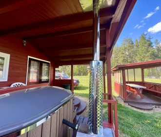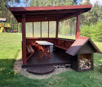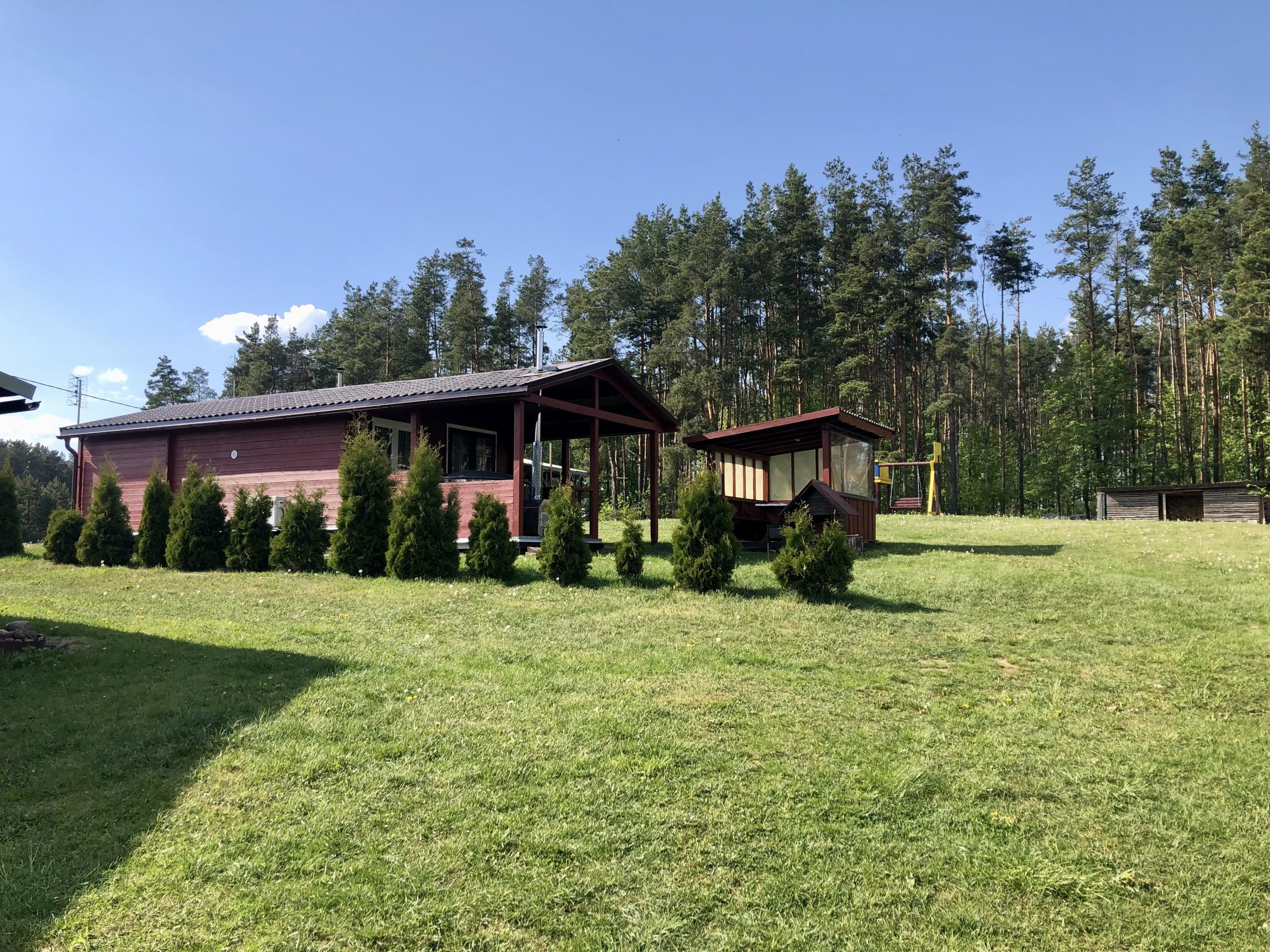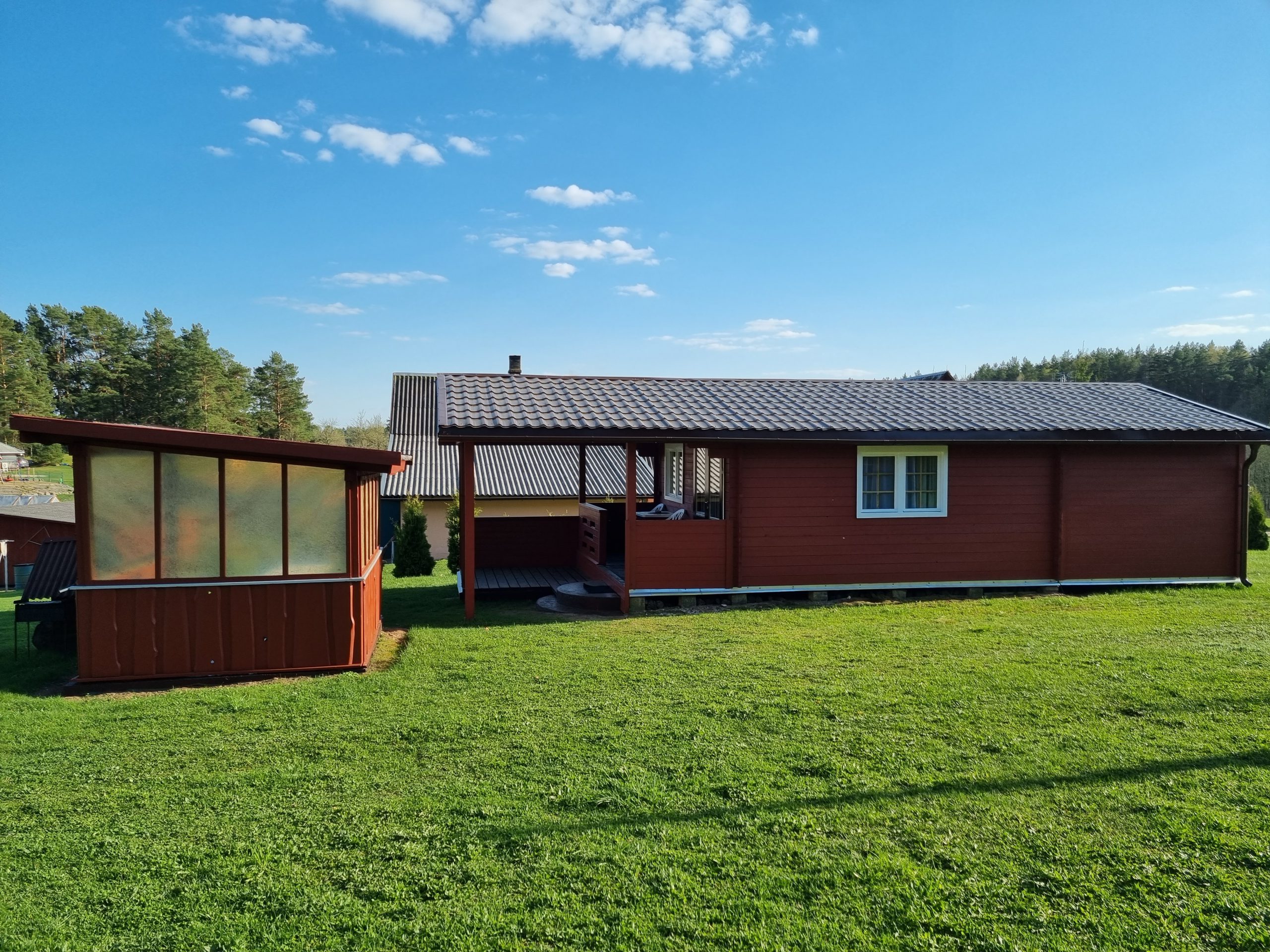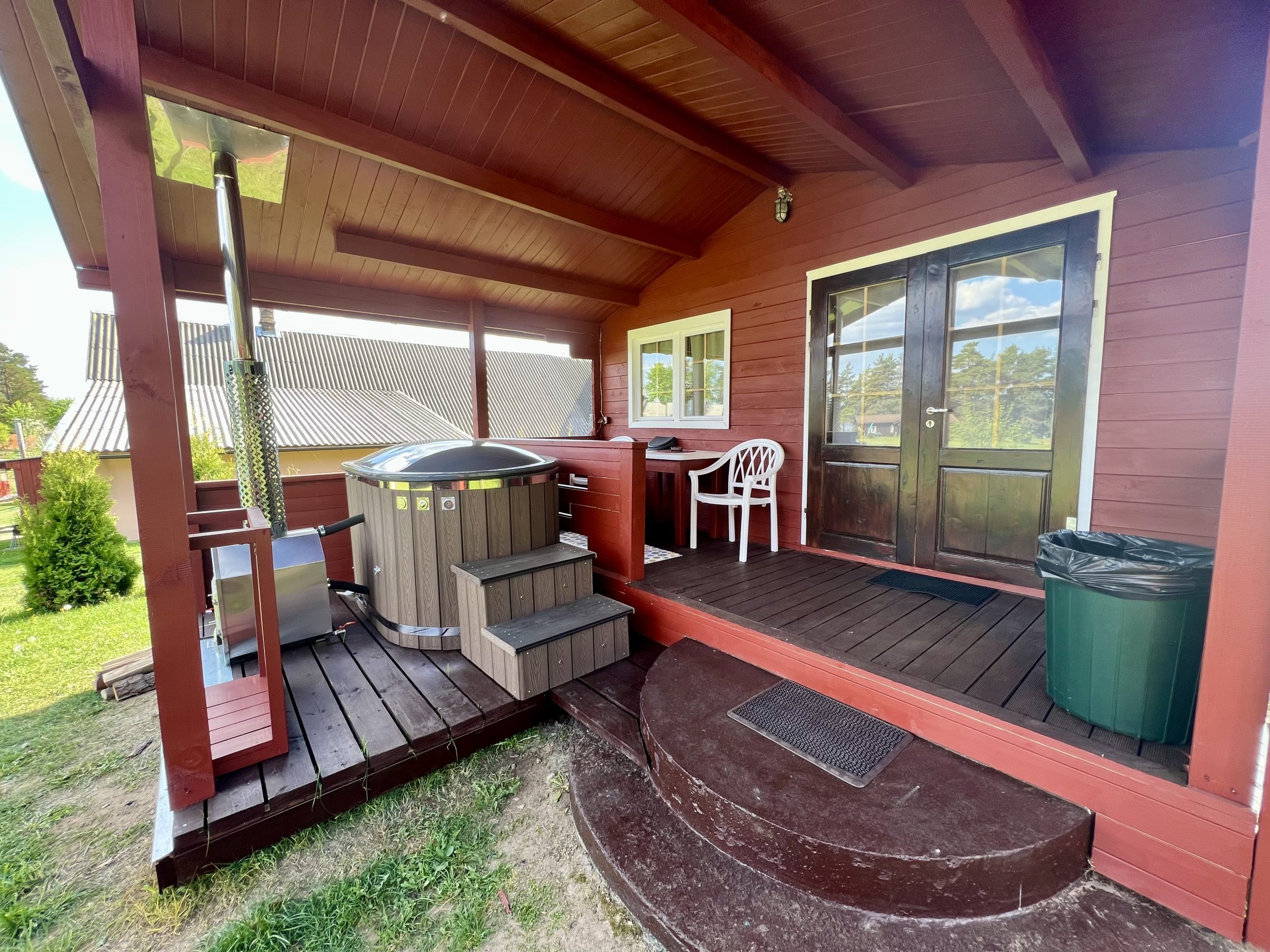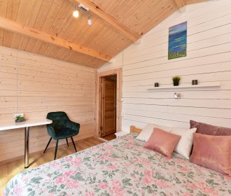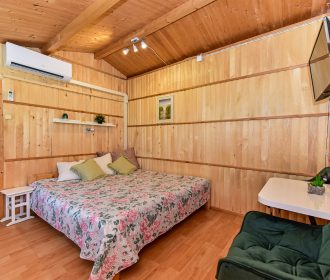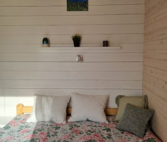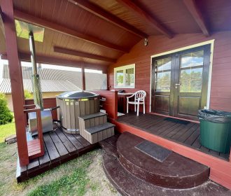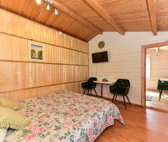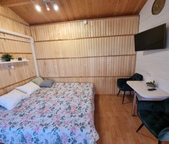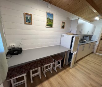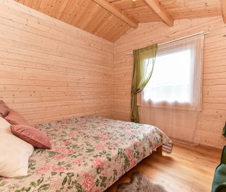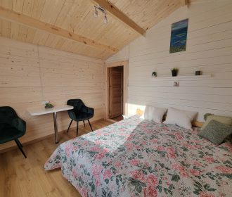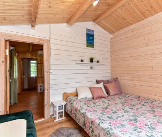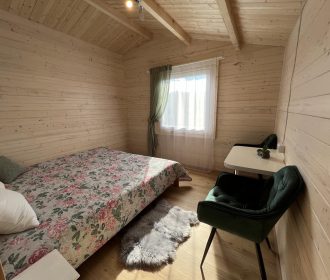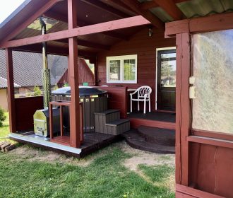 Vieno aukšto namelis, renovuotas 2023 m. Du kambariai po dvi miegamas vietas – viso namelyje 4 miegamos vietos. Yra virtuvėlė, dušas, tualetas. Virtuvėlėje šaldytuvas, dujinė viryklė, indai, įrankiai. Yra televizorius, internetas (WIFI). Įrengtas kondicionierius. Prie namelio įrengta terasa su ofūro kubilu. Duodama šašlykinė, iešmai bei malkos. Šalia namelio pavėsinė. Namelyje yra pagalvės ir antklodės, užvalkalus reikia atsivežti savo. Patalynę galima išsinuomoti (viengulis komplektas – 3EUR, dvigulis komplektas – 5EUR.)