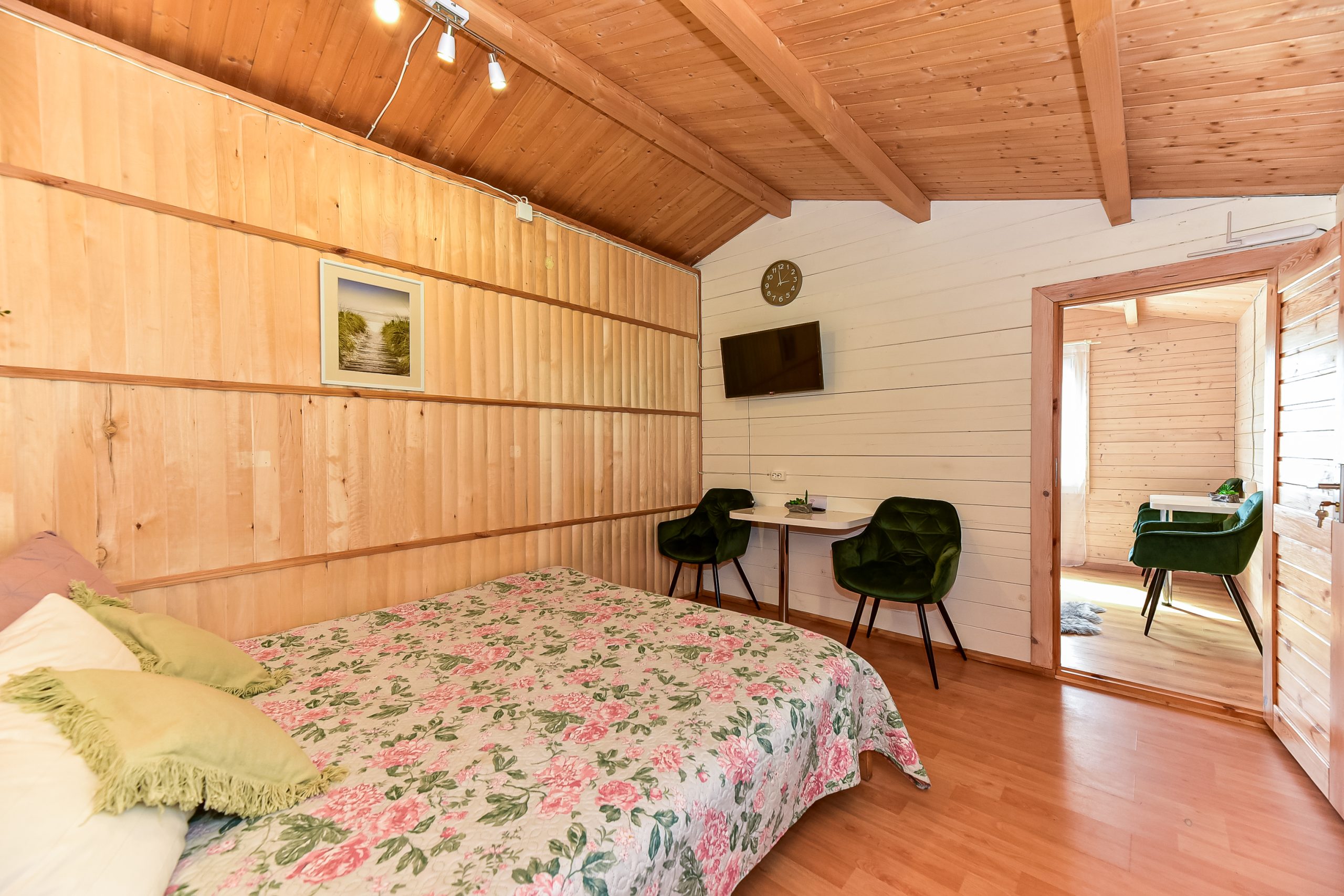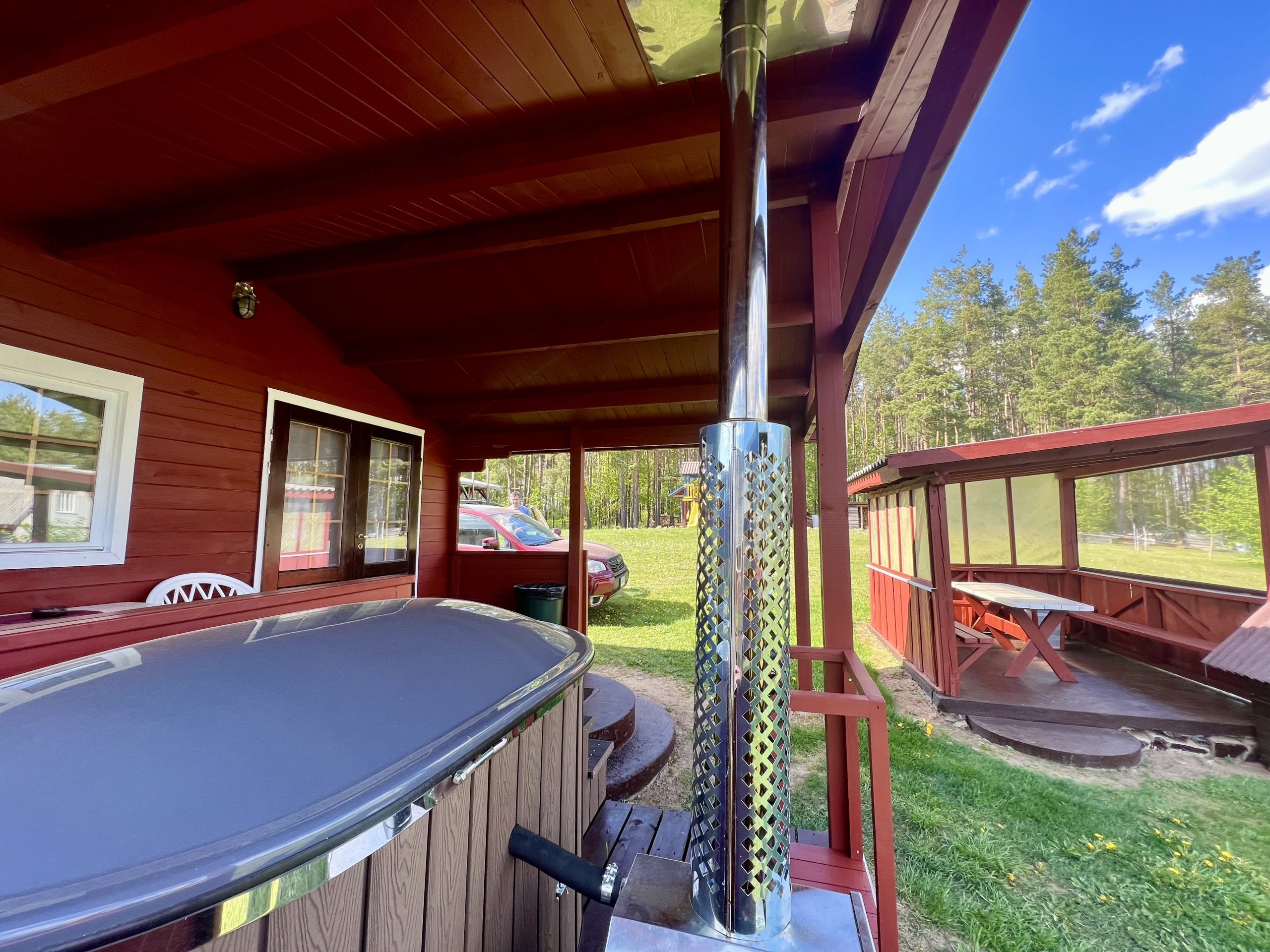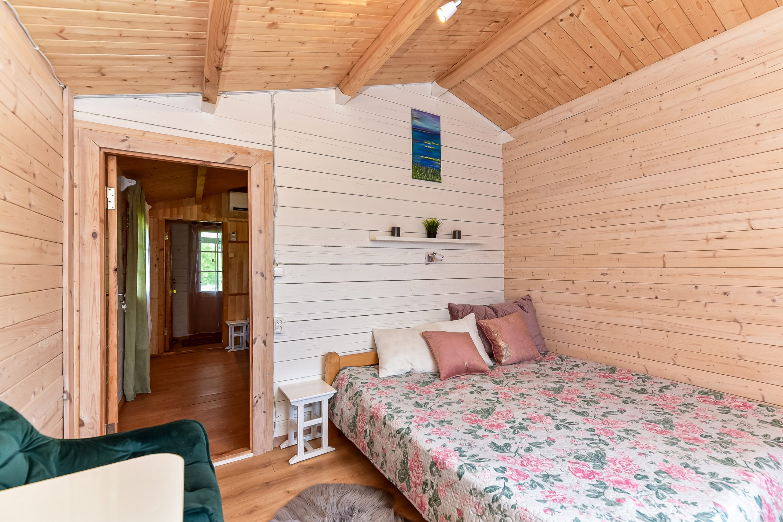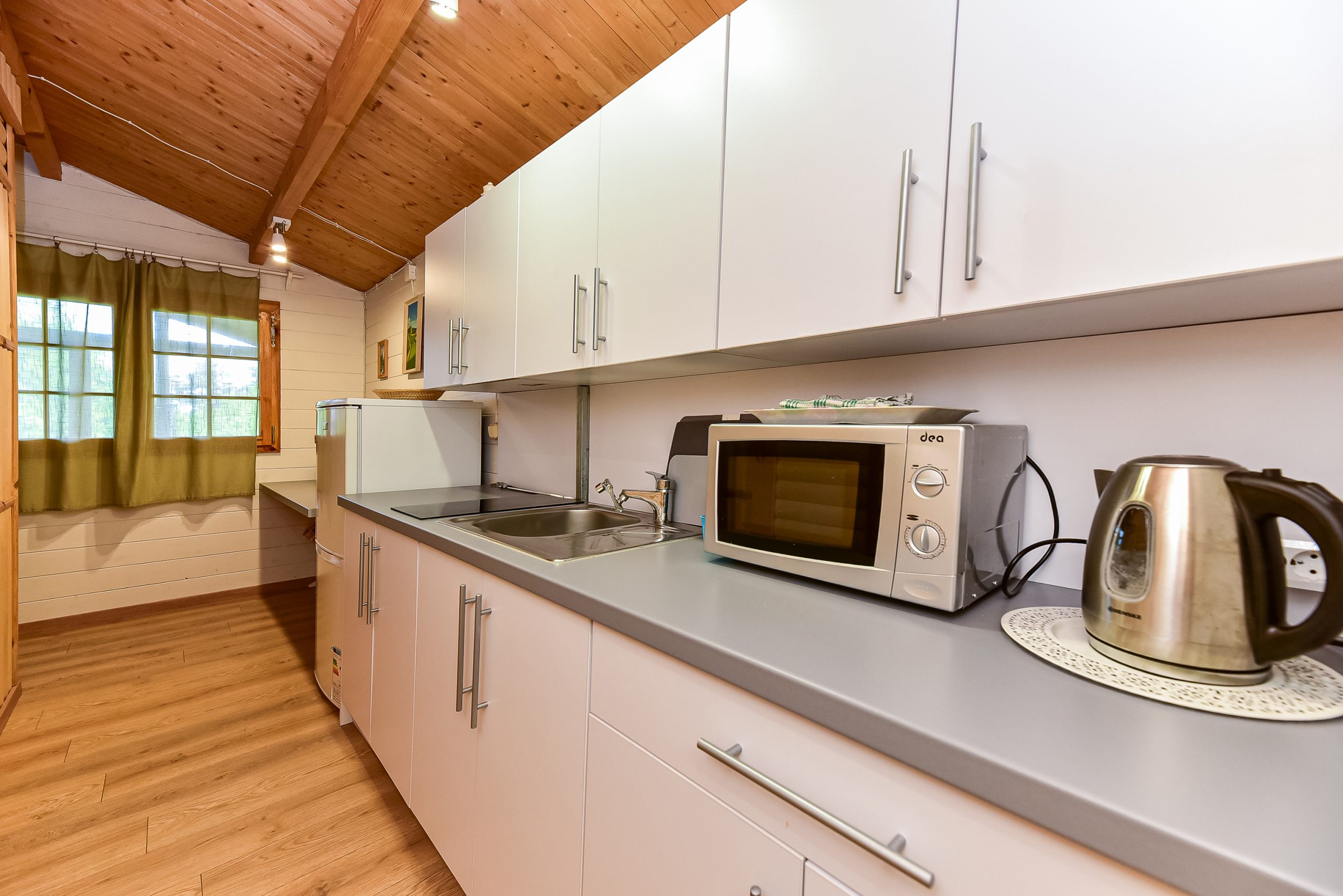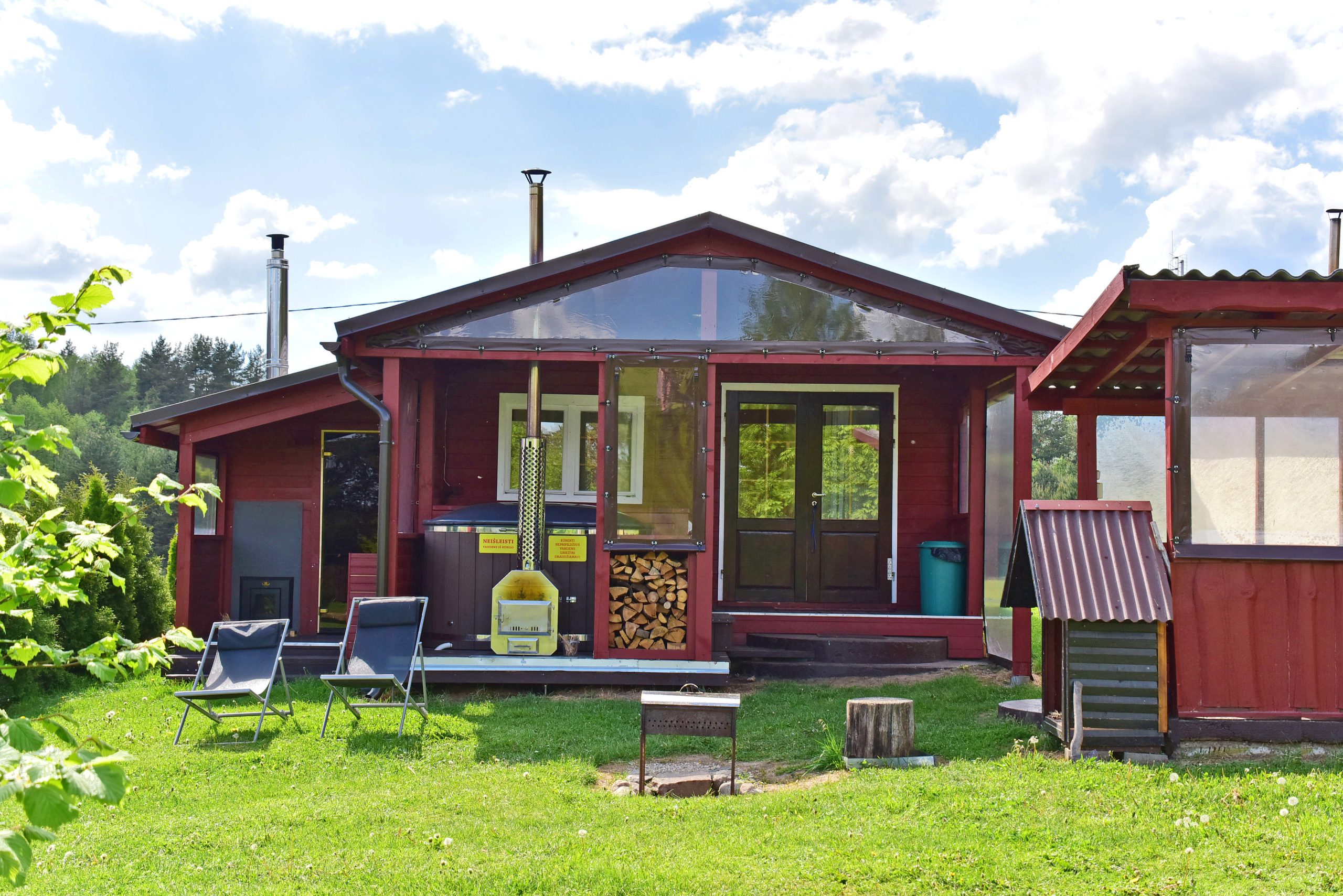 Vieno aukšto namelis, renovuotas 2023 m. Du kambariai po dvi miegamas vietas – viso namelyje 4 miegamos vietos. Yra virtuvėlė, dušas, tualetas. Virtuvėlėje šaldytuvas, dujinė viryklė, indai, įrankiai. Yra televizorius, internetas (WIFI). Įrengtas kondicionierius. Prie namelio įrengta terasa su ofūro kubilu. Duodama šašlykinė, iešmai bei malkos. Šalia namelio pavėsinė. Namelyje yra pagalvės ir antklodės, užvalkalus reikia atsivežti savo. Patalynę galima išsinuomoti (viengulis komplektas – 3EUR, dvigulis komplektas – 5EUR.)