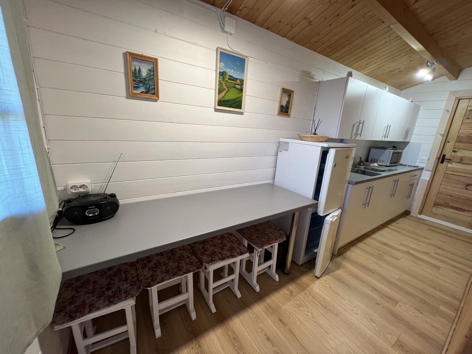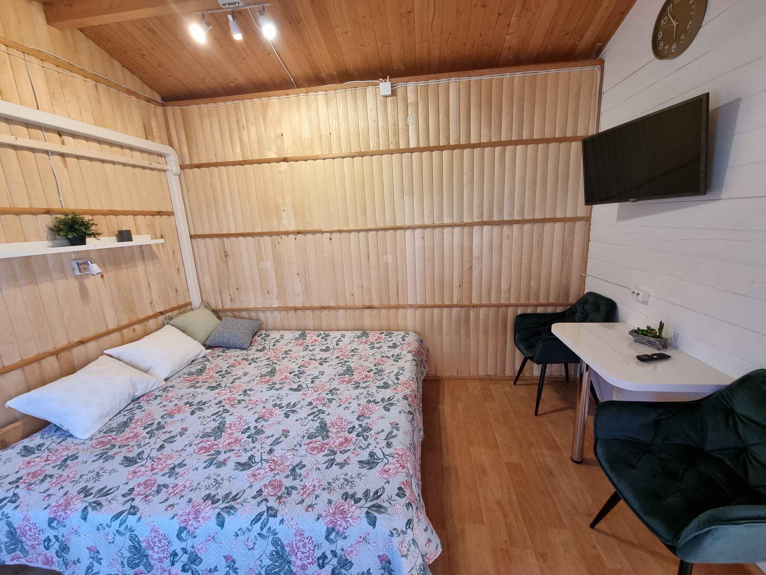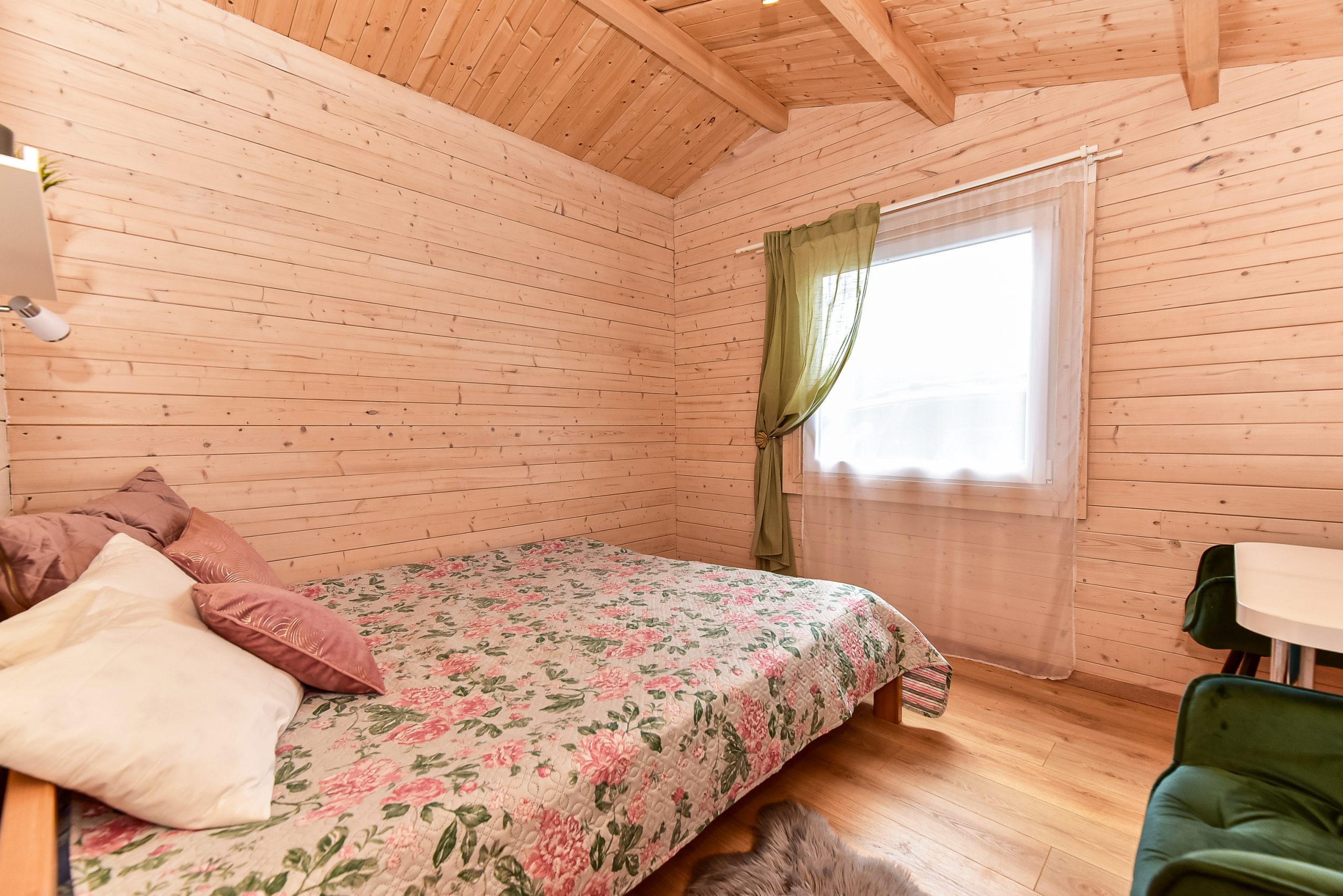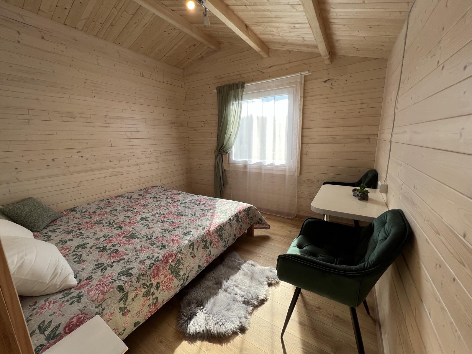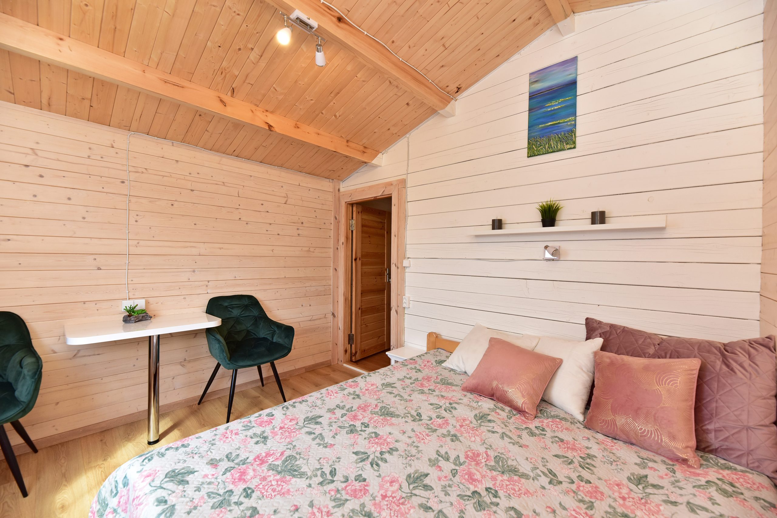 Vieno aukšto namelis, renovuotas 2023 m. Du kambariai po dvi miegamas vietas – viso namelyje 4 miegamos vietos. Yra virtuvėlė, dušas, tualetas. Virtuvėlėje šaldytuvas, dujinė viryklė, indai, įrankiai. Yra televizorius, internetas (WIFI). Įrengtas kondicionierius. Prie namelio įrengta terasa su ofūro kubilu. Duodama šašlykinė, iešmai bei malkos. Šalia namelio pavėsinė. Namelyje yra pagalvės ir antklodės, užvalkalus reikia atsivežti savo. Patalynę galima išsinuomoti (viengulis komplektas – 3EUR, dvigulis komplektas – 5EUR.)