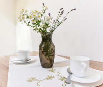 Namelyje yra pagalvės ir antklodės, užvalkalus reikia atsivežti savo. Patalynę galima išsinuomoti ( dvigulis komplektas su dviem dideliais ranksluociais – 5EUR.)