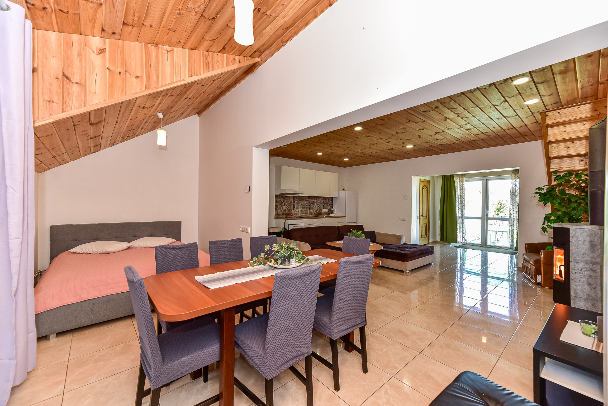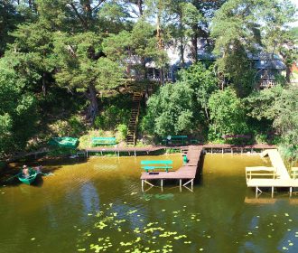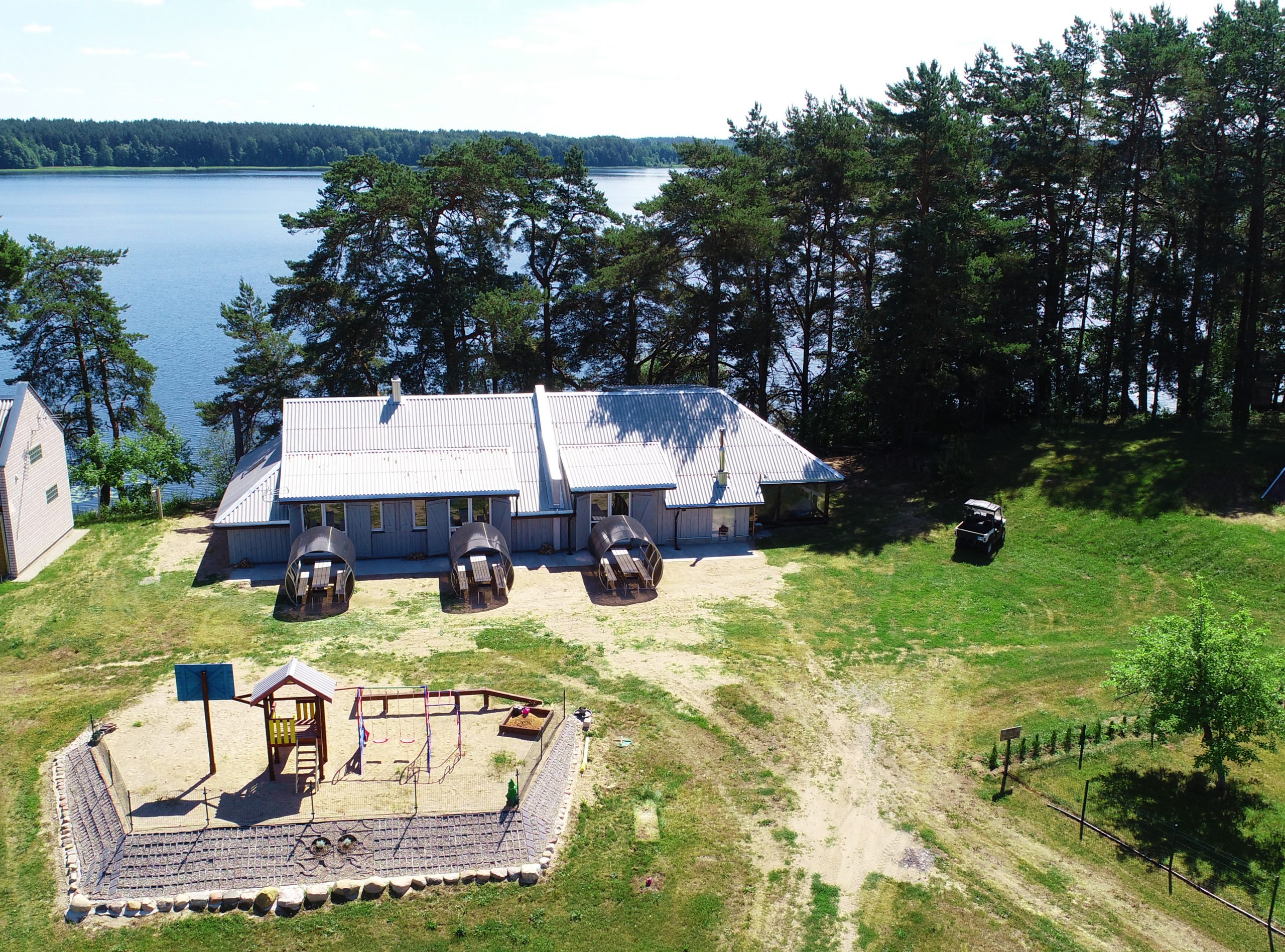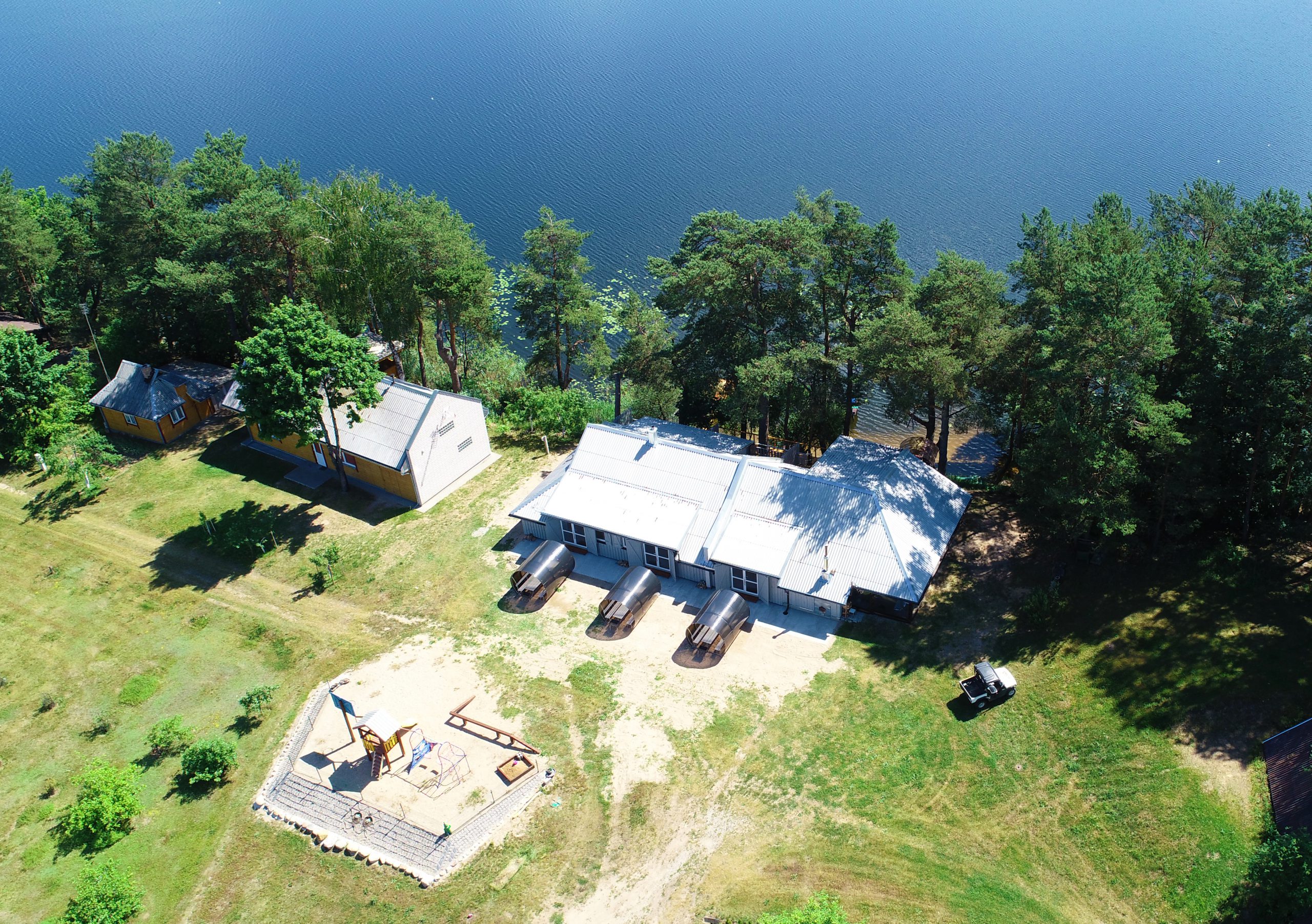 Dviejų aukštų kotedžiukas ant ežero kranto su židiniu. Pirmame aukšte svetainė su virtuve, tualetas, dušas. Įrengtas grindinis šildymas. Stovi dvigulė lova, sofa-lova, minkštas kampas, valgomasis stalas. Jaukumo suteikia židinys. Antrame aukšte trys dvigulės lovos ir viena viengulė lova. Viso kotedžiuke 8 miegamos vietos. Yra televizorius, internetas. Įrengtas kondicionierius. Įrengta terasa su kubilu ir pirtimi po stogu. Iš terasos nusileidimas laiptais iki pat ežero. Lauke pavėsinė, kurioje telpa 6-8 žmonės. Šalia vaikų žaidimų aikštelė. Įrengtas krantas maudytis bei keturi lieptai. Pakrante ir lieptais naudojasi 7A, 7B, 7C, 7D kotedžiukų gyventojai.