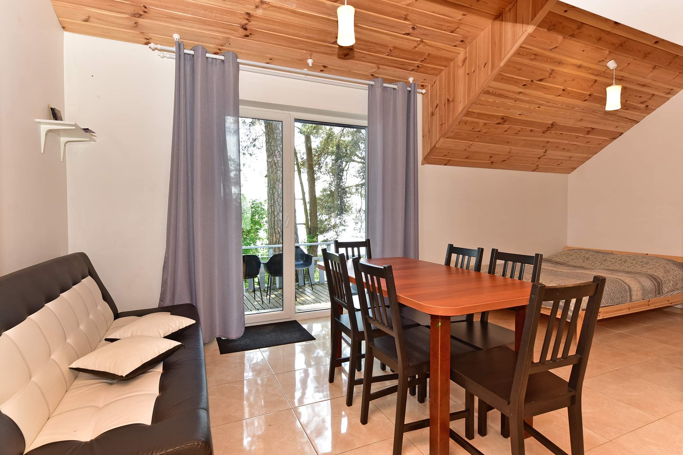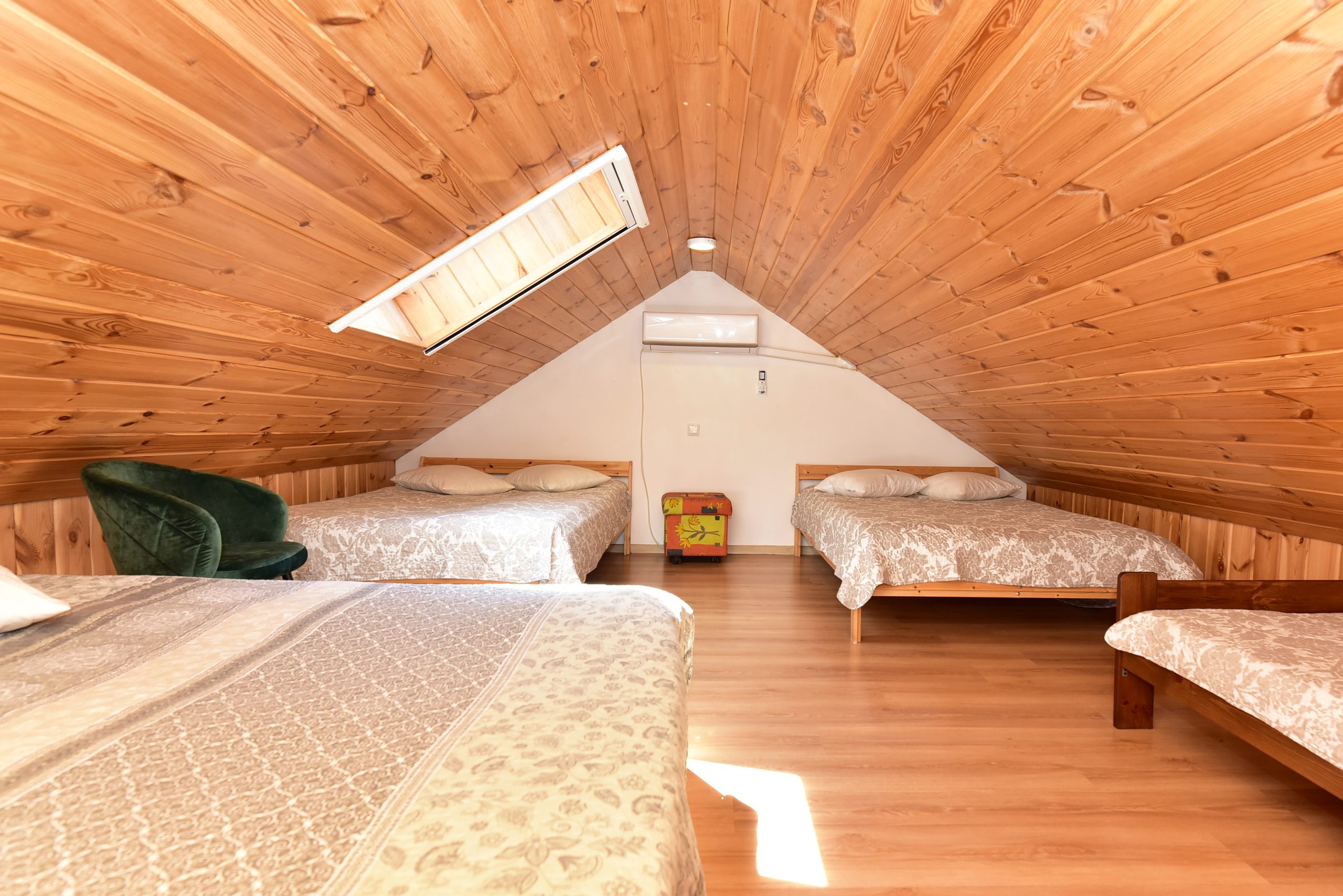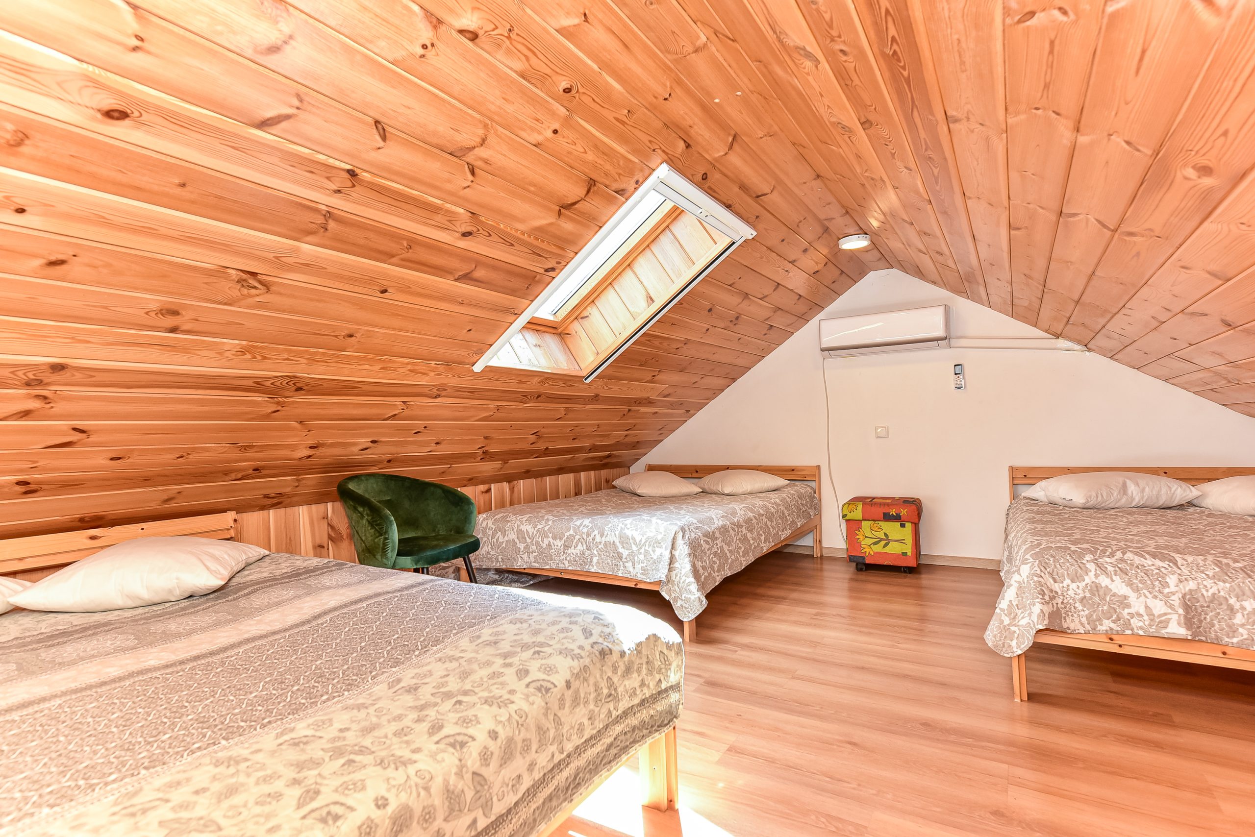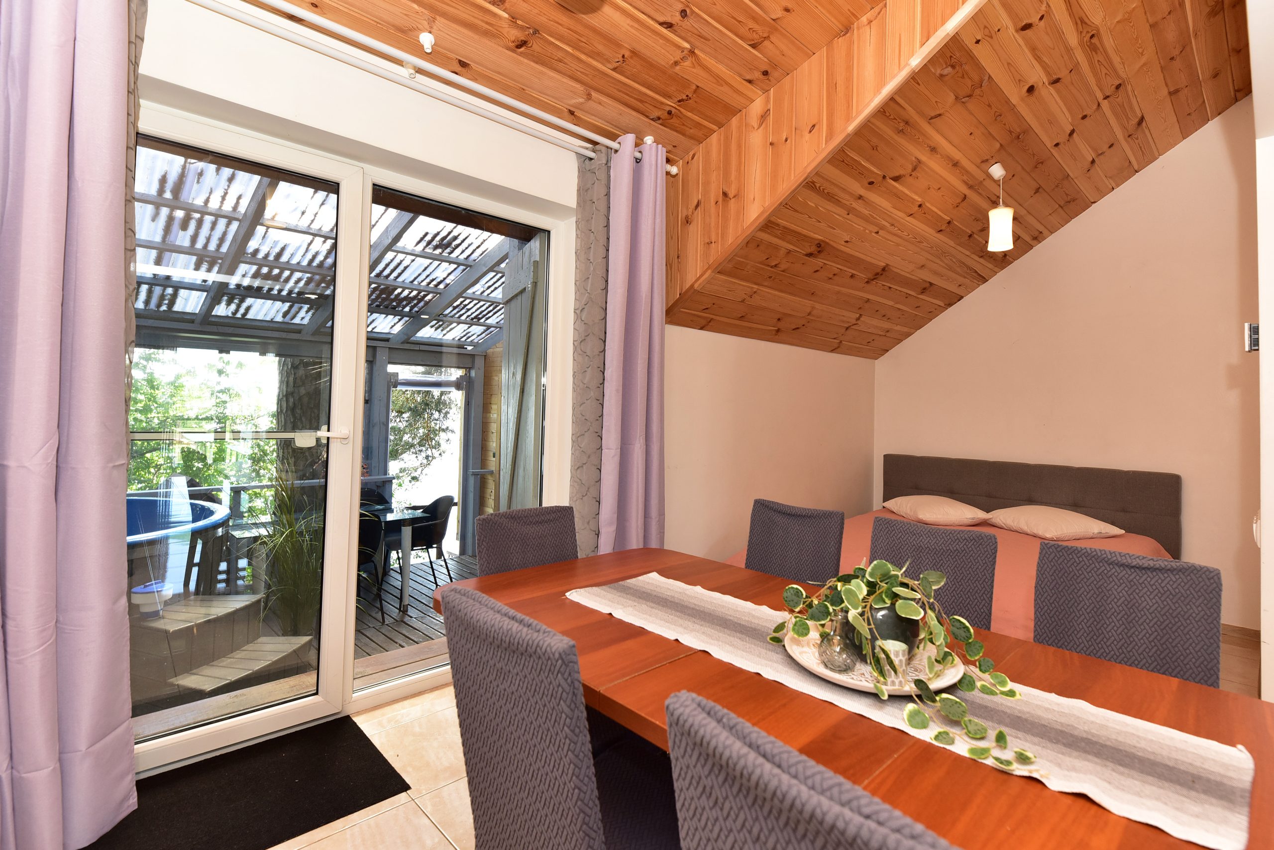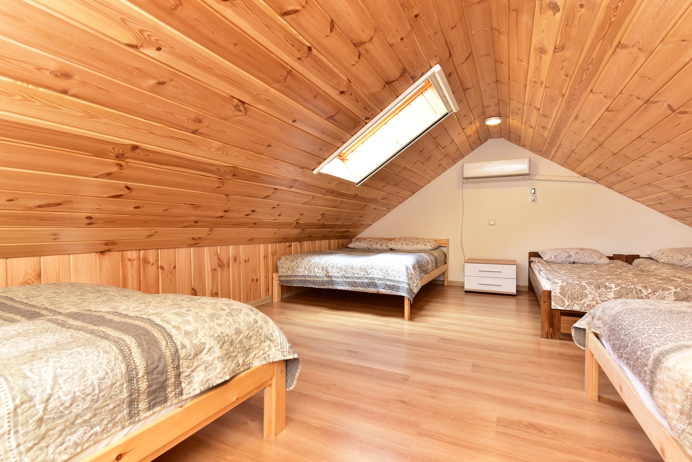 Namelyje yra pagalvės ir antklodės, užvalkalus reikia atsivežti savo. Patalynę galima išsinuomoti (viengulis komplektas – 3EUR, dvigulis komplektas – 5EUR.)
