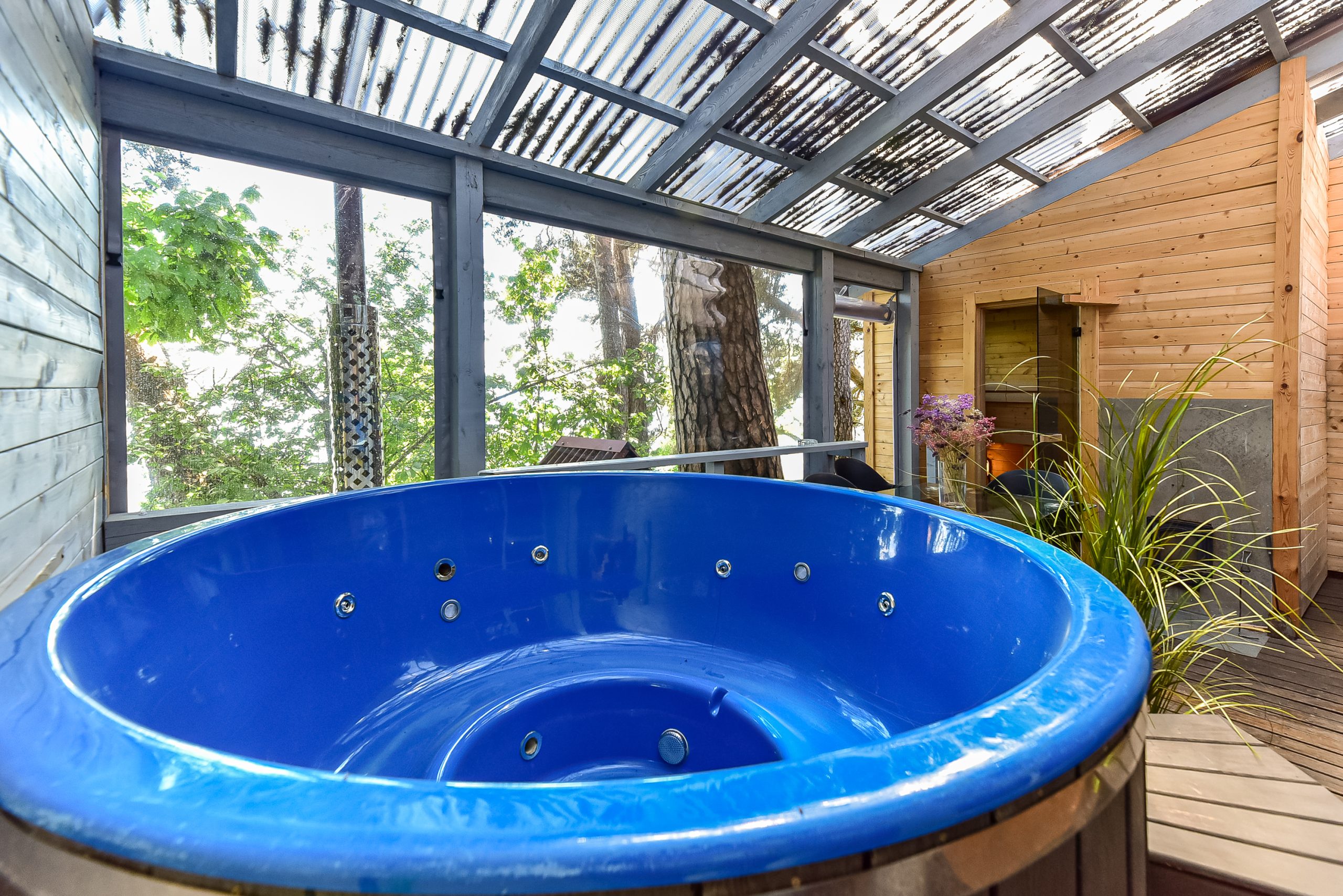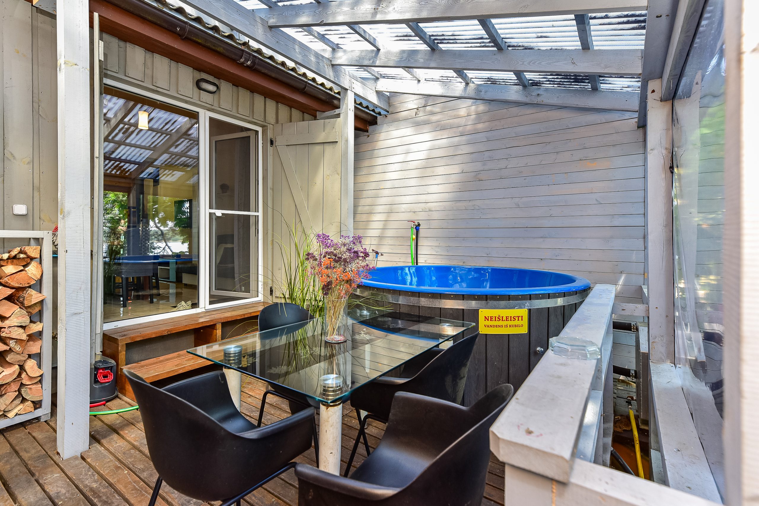 Kubilas su hidromasažu papildomai 50 EUR dienai darbo dienomis, 60 EUR dienai savaitgalį, pirtis – 30EUR dienai.
