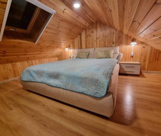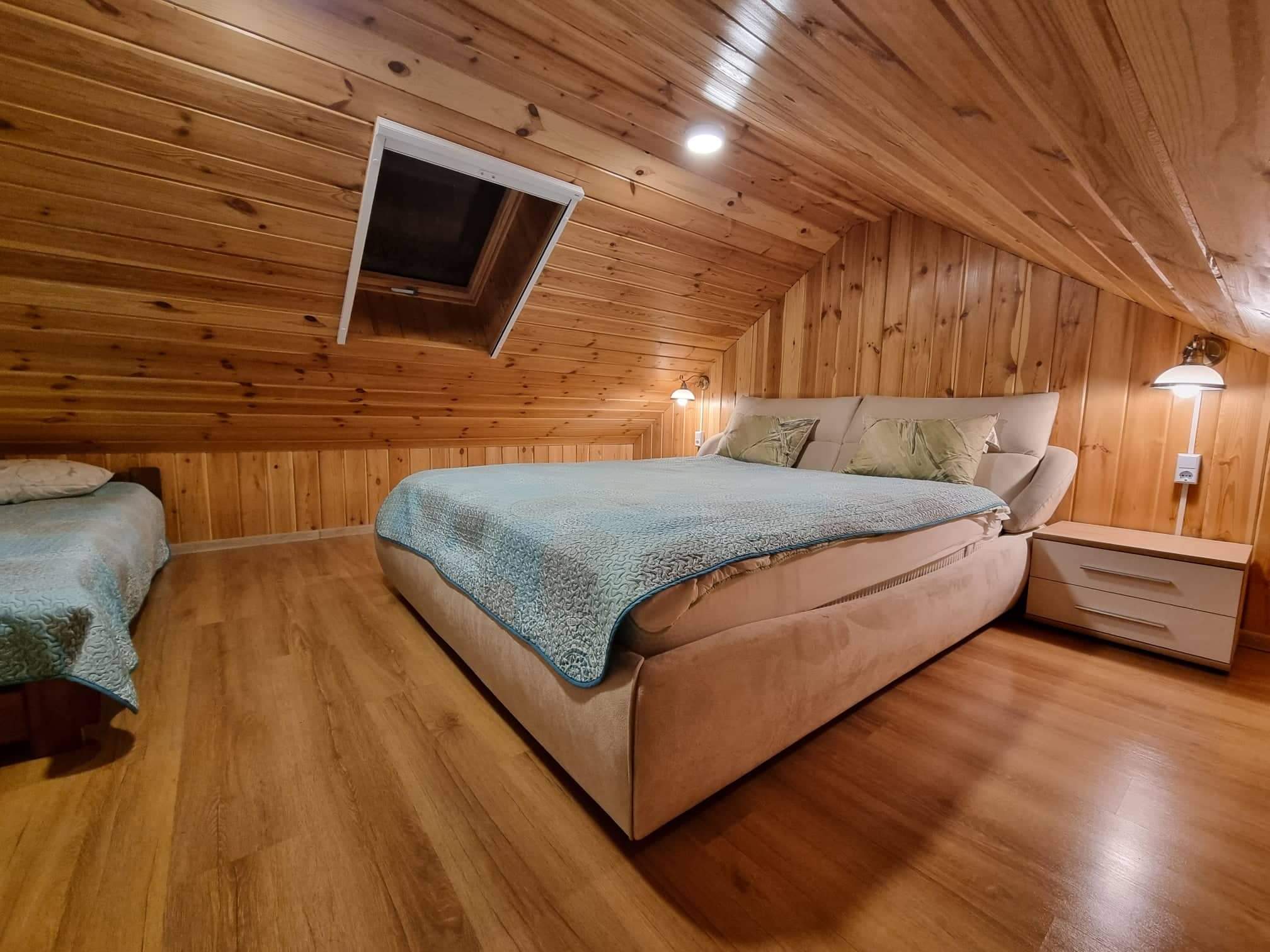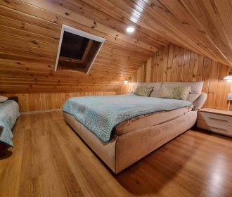 Namelyje yra pagalvės ir antklodės, užvalkalus reikia atsivežti savo. Patalynę galima išsinuomoti (viengulis komplektas – 3EUR, dvigulis komplektas – 5EUR.)