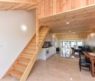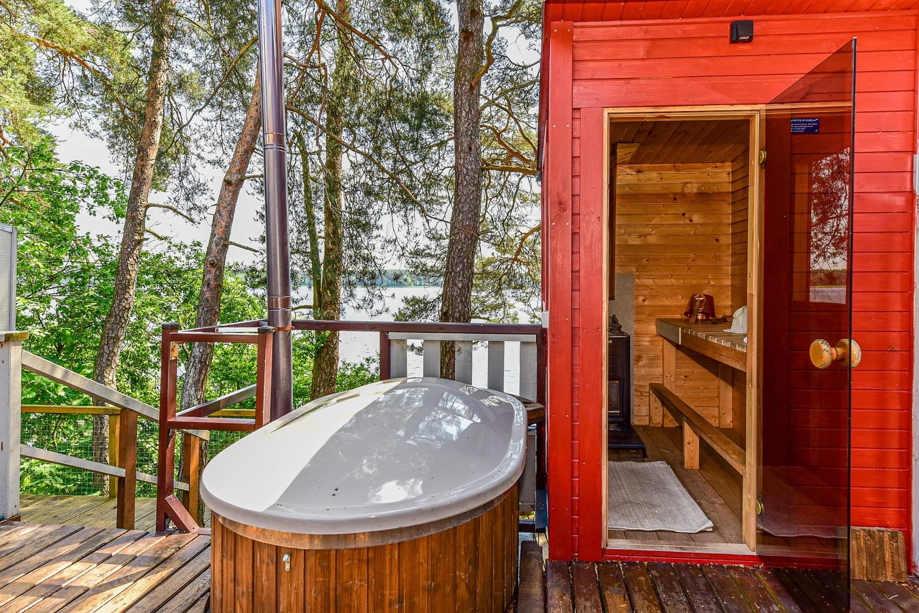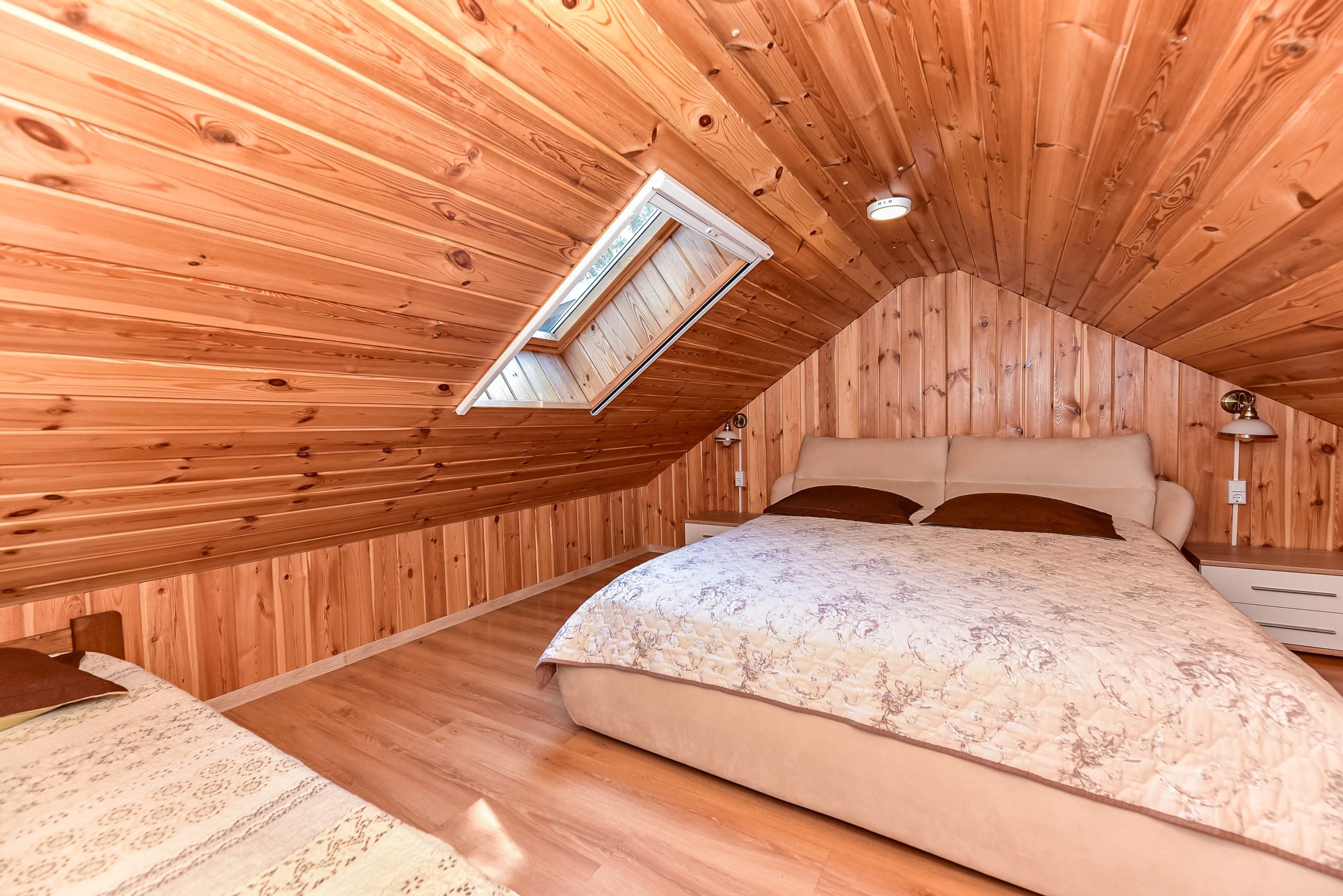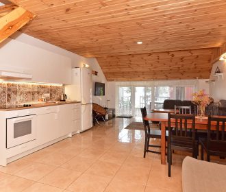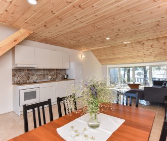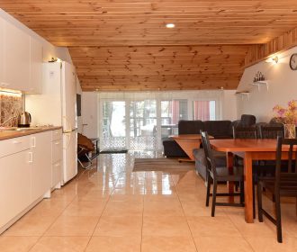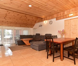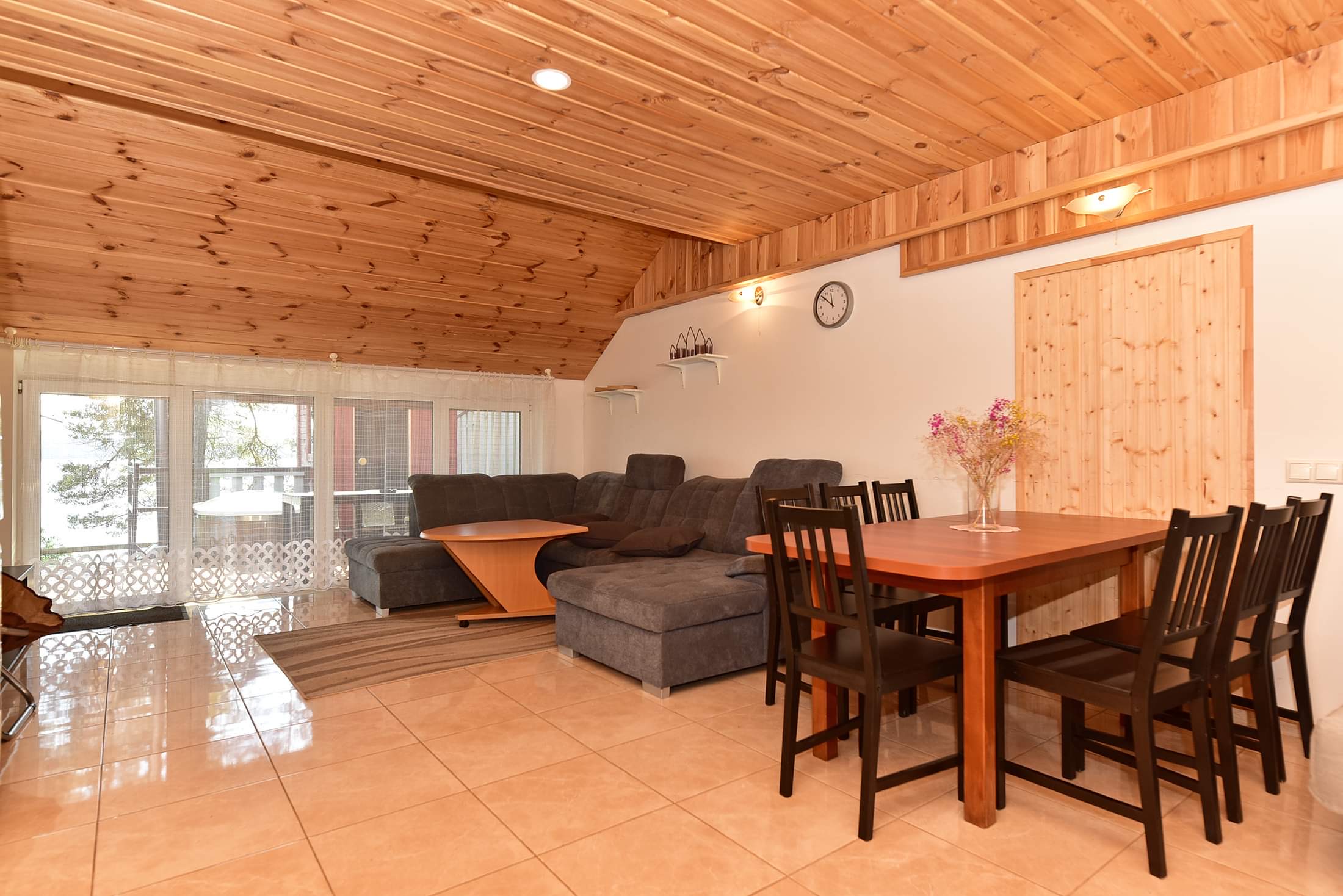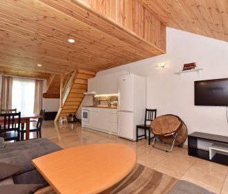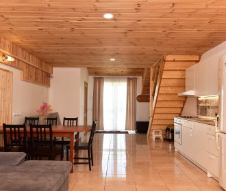 Dviejų aukštų kotedžiukas ant ežero kranto. Pirmame aukšte svetainė su virtuve, tualetas, dušas. Įrengtas grindinis šildymas. Stovi minkštas kampas, valgomasis stalas. Antrame aukšte viena dvigulė ir viena viengulė lovos. Viso kotedžiuke 5 miegamos vietos. Yra televizorius, internetas. Įrengtas kondicionierius. Įrengta terasa su kubilu ir pirtimi. Iš terasos nusileidimas laiptais iki pat ežero. Lauke pavėsinė, kurioje telpa 5 žmonės. Šalia vaikų žaidimų aikštelė. Įrengtas krantas maudytis bei keturi lieptai. Pakrante ir lieptais naudojasi 7A, 7B, 7C, 7D kotedžiukų gyventojai.