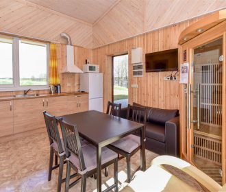 Namelyje svetainė su virtuve bei miegojimo zona ir san. mazgo patalpa (dušas, tualetas). Židinys, LED išmanusis televizorius prijungtas prie interneto, dvigulė lova, minkštas kampas. Virtuvės zonoje šaldytuvas, kaitlentė, orkaitė, mikrobangų krosnelė, visi indai, įrankiai. Namelyje veikia nemokamas bevielis internetas (Wi-Fi).
